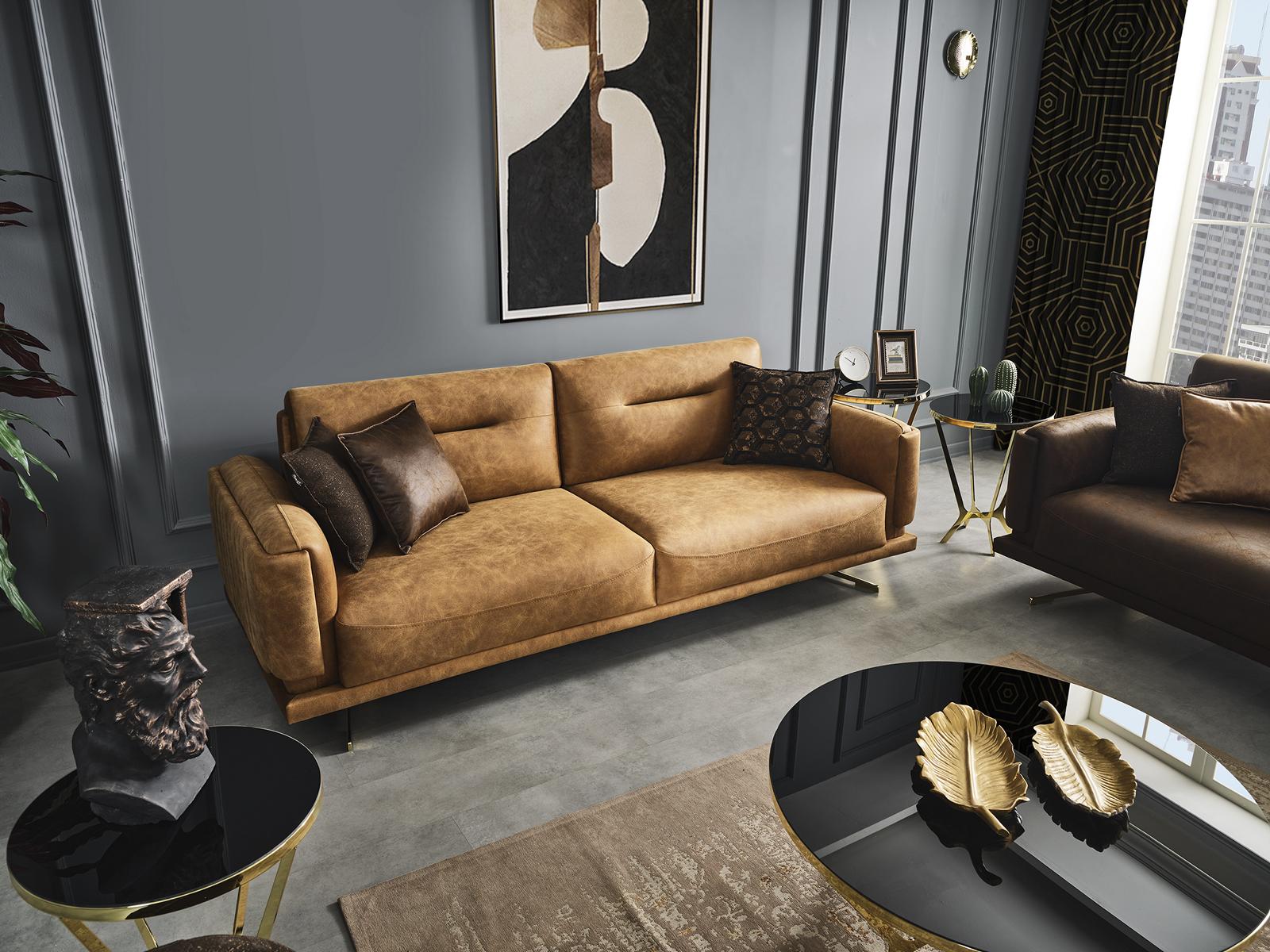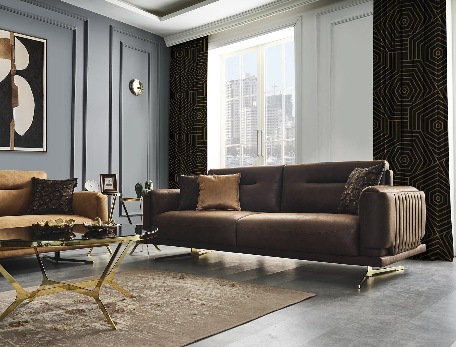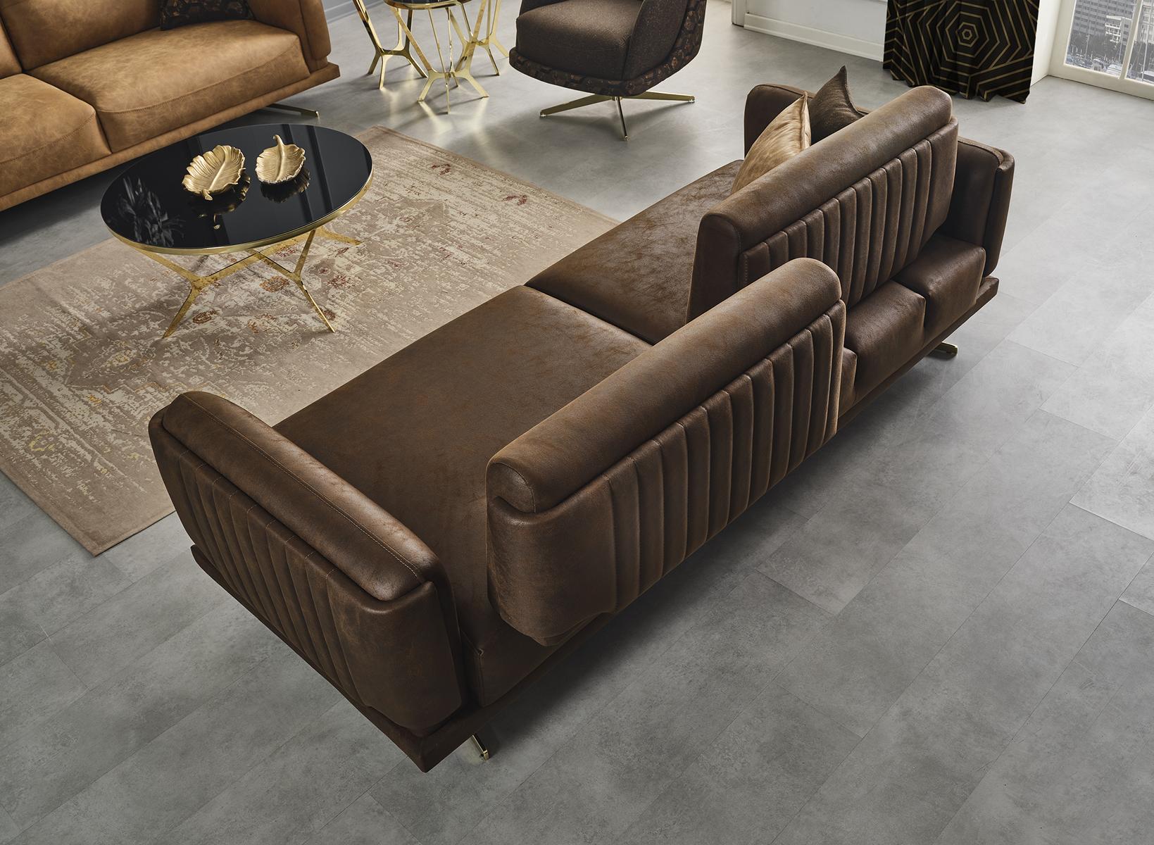 Sofagarnitur Комплект Диван 431 Кресло для сидения Кожзам Браун Набор 3 шт