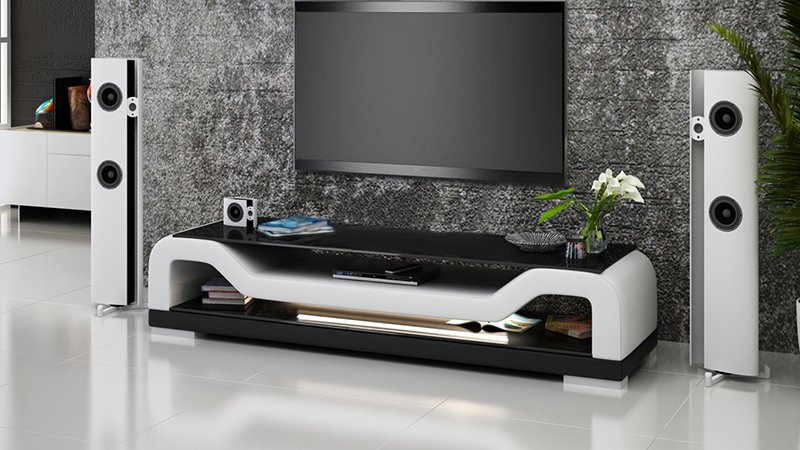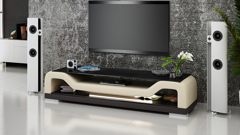 РТВ ТВ тумба боковая из кожи и стекла, стол, шкаф под телевизор, тумба, Мо.Ф.