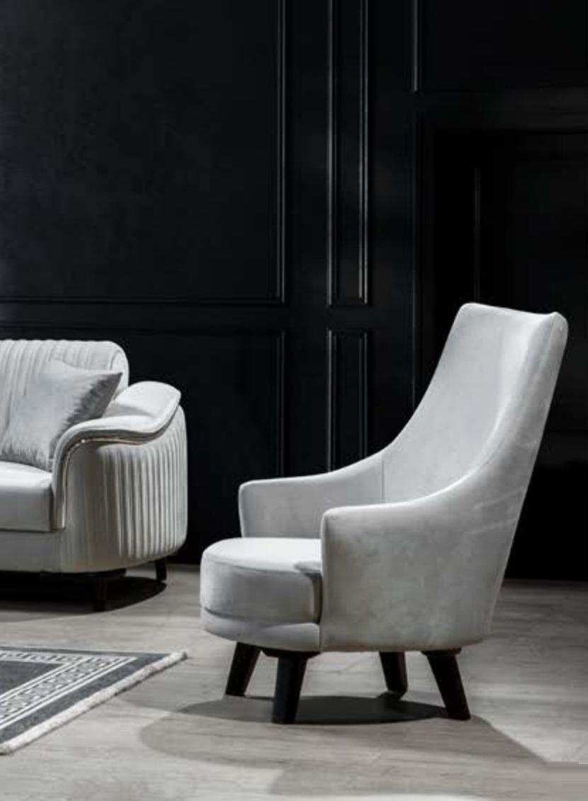 Современное кресло для гостиной, одноместный дизайн, дерево, серый цвет, текстиль.