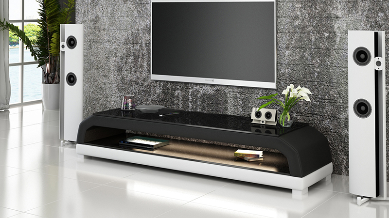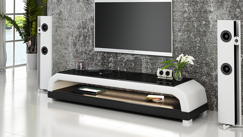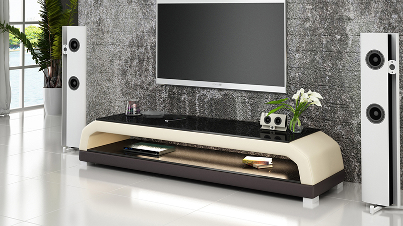 ТВ-тумба из кожи и стекла RTV, шкаф под телевизор, столик, тумба низкая Mo.G.