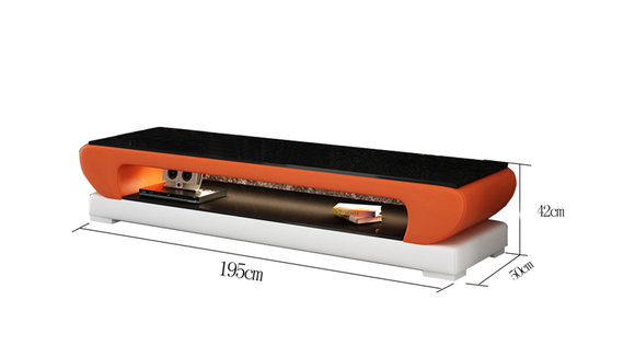 ТВ-стойка RTV из кожи и стекла, дизайнерский телевизионный шкаф, новый, современный — это сочетание элегантности и функциональности для вашего дома. Исполненный из премиум кожаного волокнистого материала (70% кожа / 30% полиэстер), данный телевизионный шкаф станет идеальным дополнением к вашей гостиной, придерживаясь современного минимализма и стильности. С возможность выбора цвета, вы сможете настроить стойку так, чтобы она гармонично вписывалась в ваш интерьер. Компактные размеры — длиной около 195 см, высотой около 42 см и глубиной около 50 см — делают эту ТВ-стойку идеальной для любого типажа жилого пространства, сохраняя при этом достаточное место для ваших устройств.