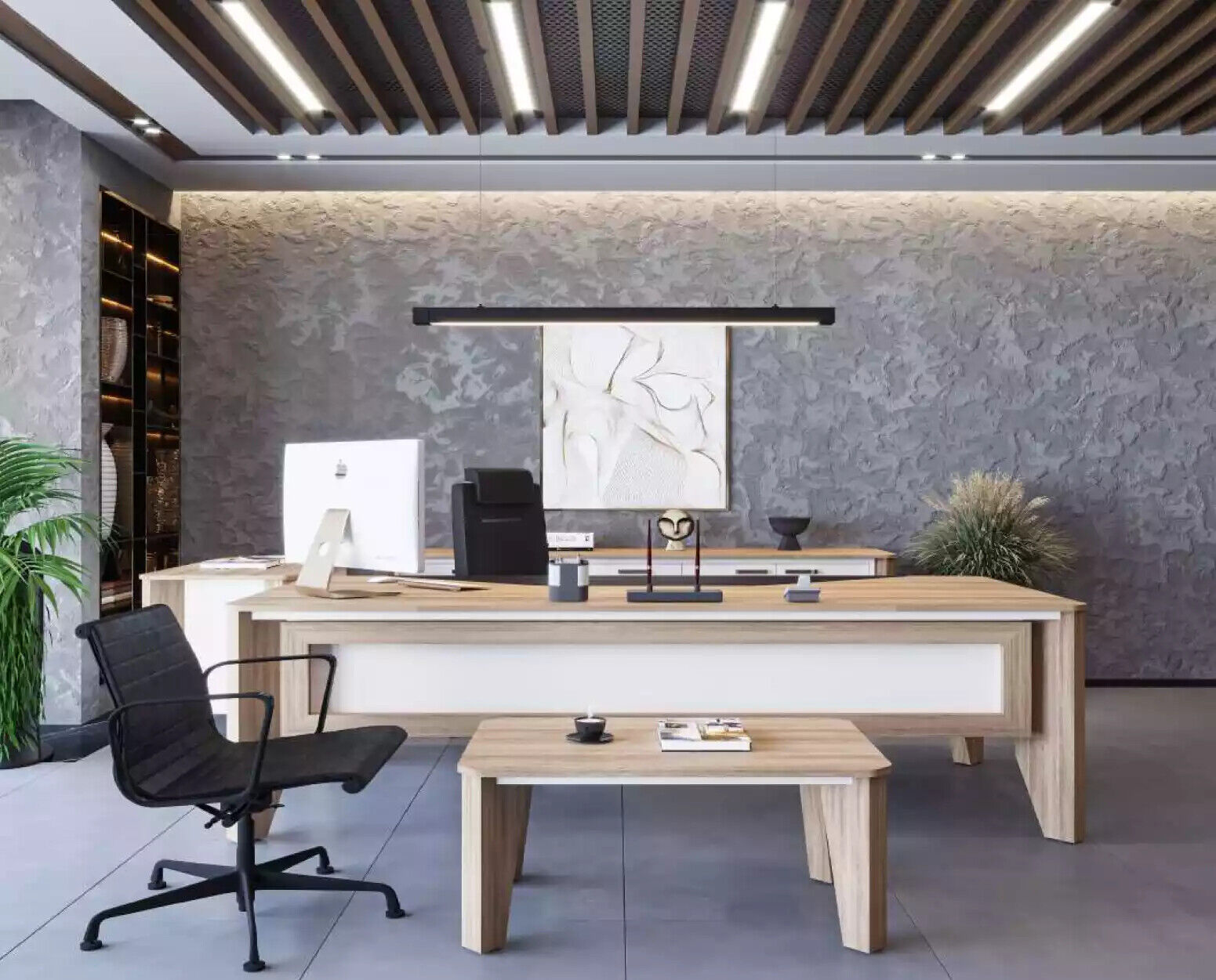Данный набор мебели идеально подойдет для оборудования рабочего пространства с минимальными затратами времени и усилий. Письменный стол предоставляет достаточно места для работы, а шкаф для документов поможет хранить важные бумаги и папки в порядке. Журнальный столик отлично дополнит интерьер и станет уютным местом для чашки кофе или чтения. Современный дизайн и надежное исполнение делают этот набор мебели идеальным выбором для всех, кто ценит комфорт и функциональность в своем рабочем пространстве.