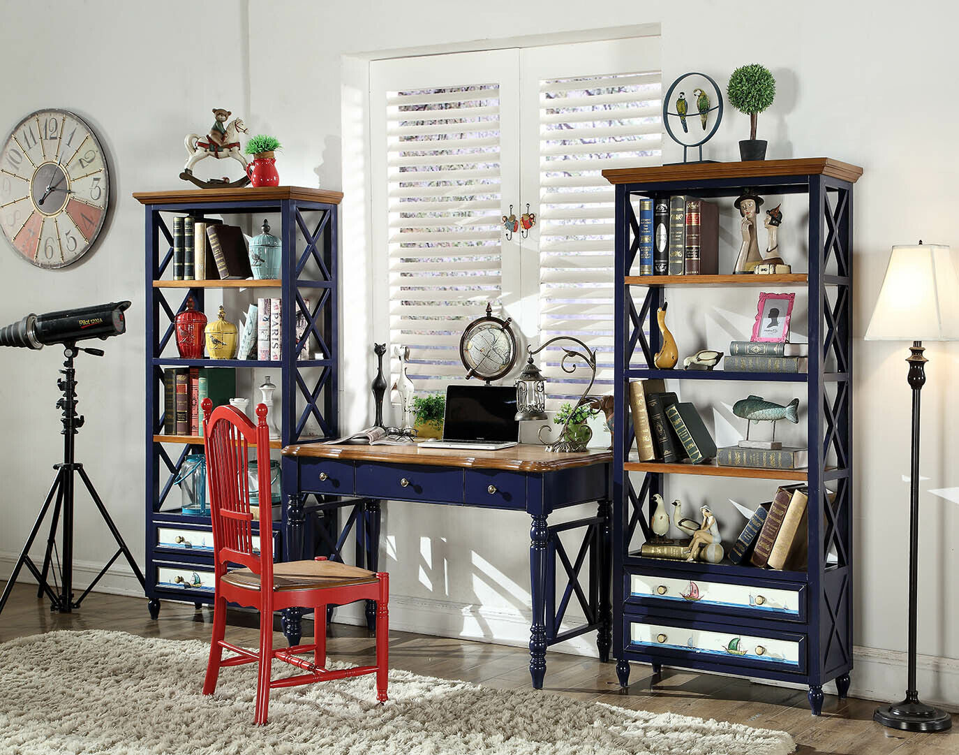 Письменный стол Офис Мебель Дерево Полки Офисный стол Обеденный стол Стол Стул 4 предмета - это стильный и удобный комплект мебели для вашего офиса или дома. Включает в себя два книжных шкафа, компьютерный стол и стул, все изготовленные из качественного дерева. Шкафы имеют размеры около 85x180x35 см каждый, компьютерный стол - около 122x78x60 см, а стул - около 38x100x45 см. Яркий цвет как на изображении придаст вашему интерьеру особый шарм, а функциональные полки обеспечат удобное размещение книг, документов и других предметов.
