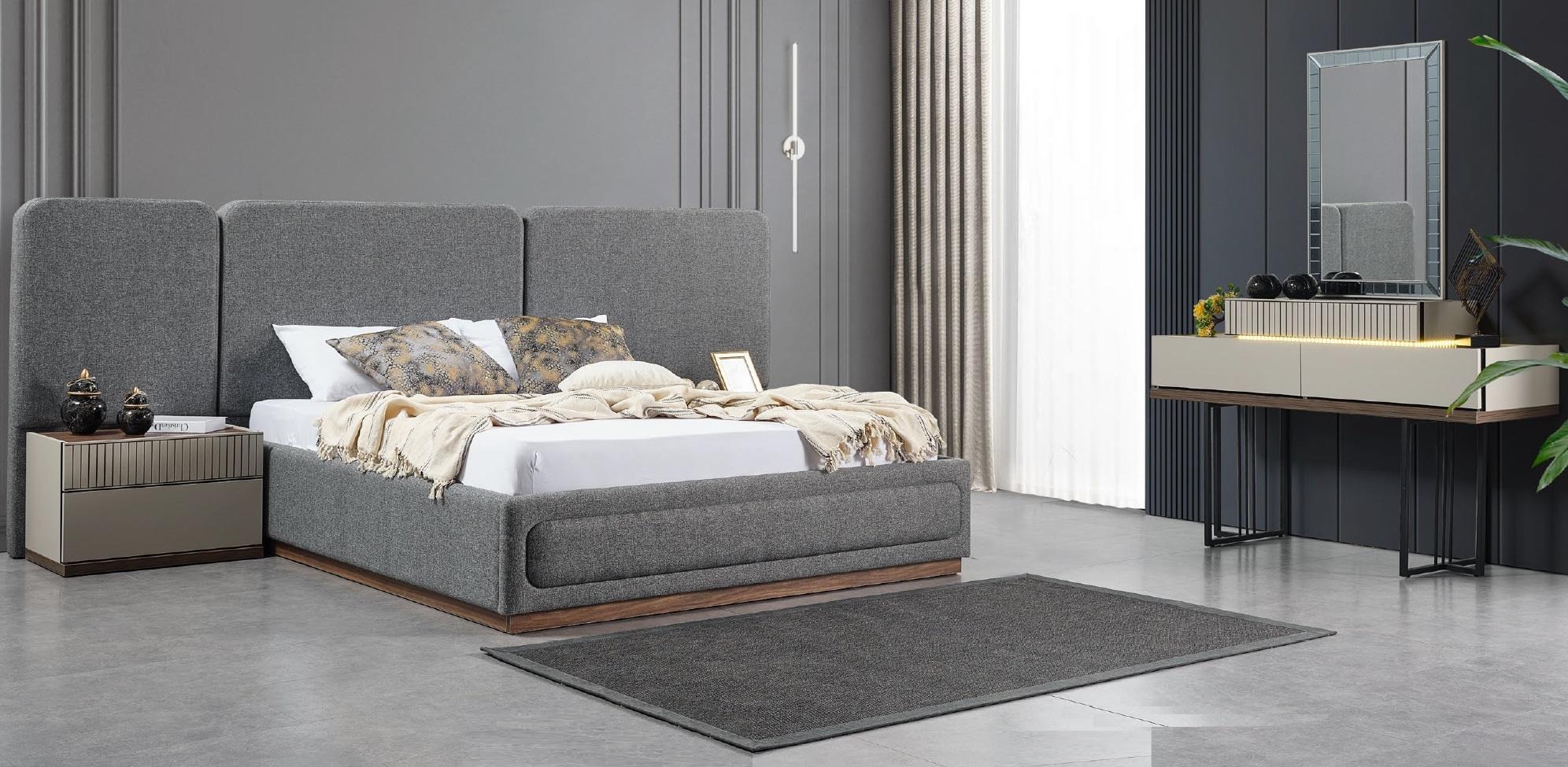 Кровать 2x Тумбочки Туалетный столик Роскошная дизайнерская мебель Комплект постельного белья 4 предмета
