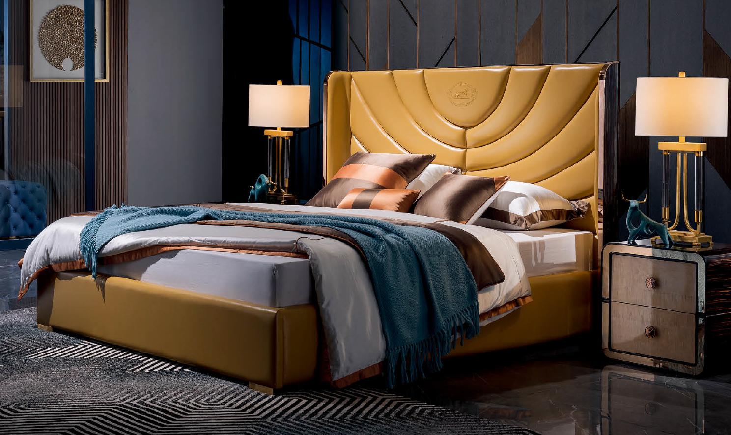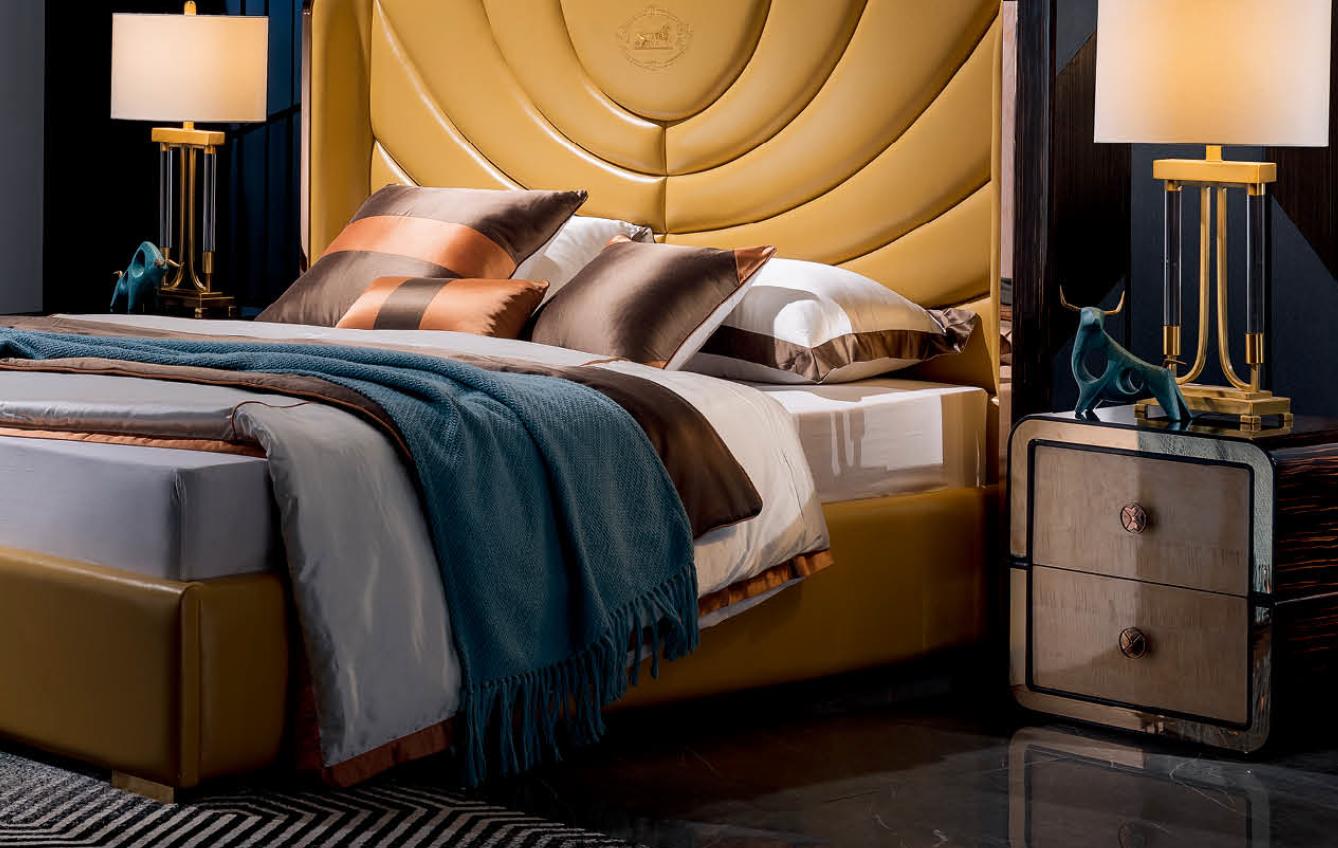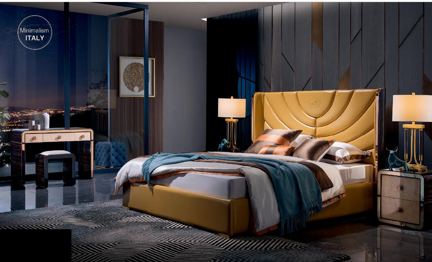 Спальный гарнитур из кожи с кроватью и туалетным столиком