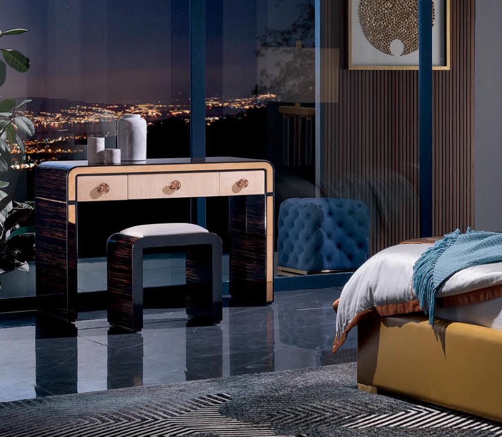 Укомплектованный туалетный столик и табурет идеально подходят для утренних ритуалов ухода за собой. Кровать с удобными размерами создает приглашающую атмосферу для отдыха и сна. Ночные столики обеспечивают удобство хранения необходимых мелочей прямо у постели. Этот спальный гарнитур превратит вашу спальню в уютное пространство, где вы будете наслаждаться каждым мгновением отдыха. Освежите интерьер и добавьте стиль вашей спальне с этим изысканным спальным гарнитуром из кожи.