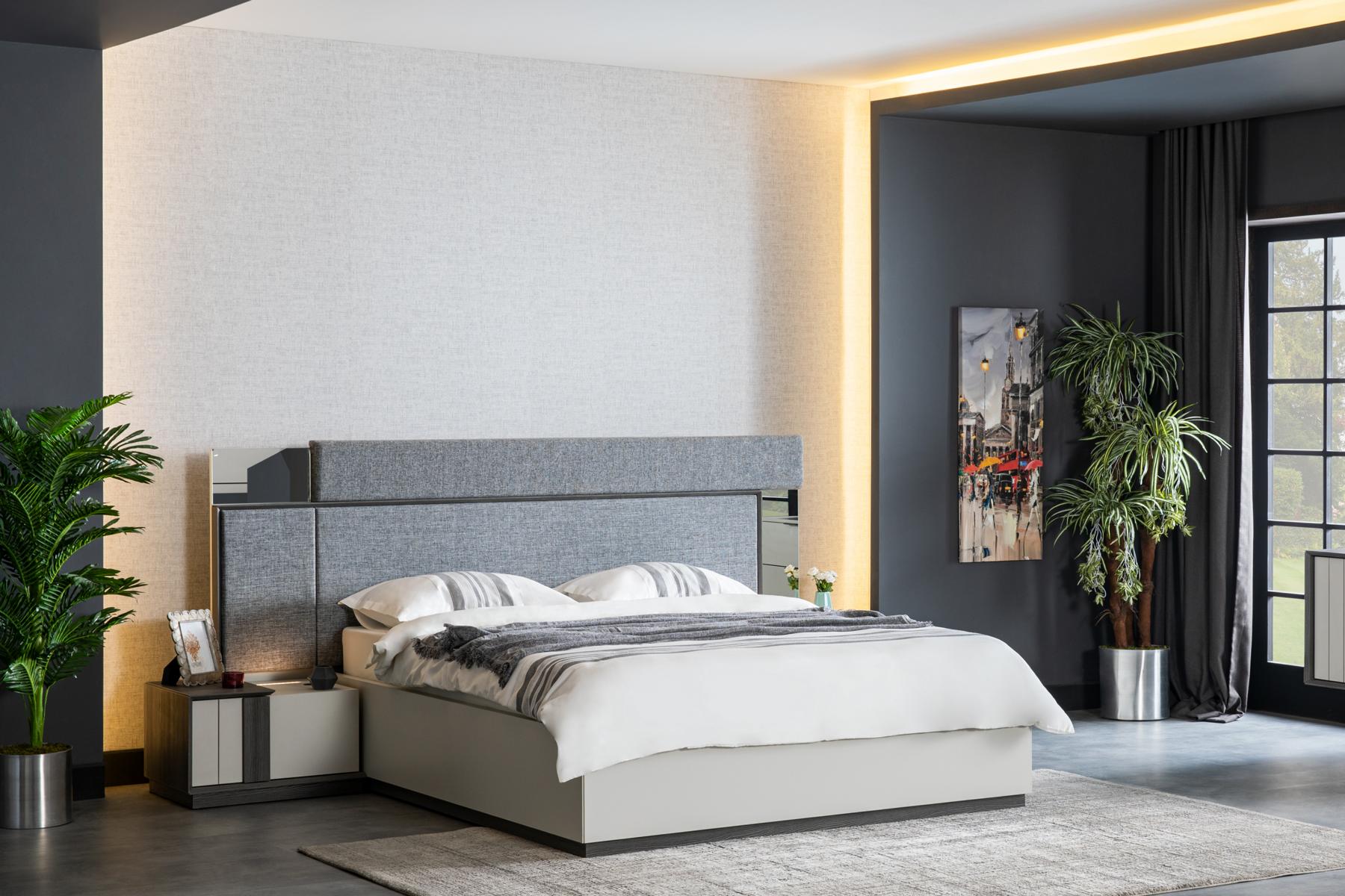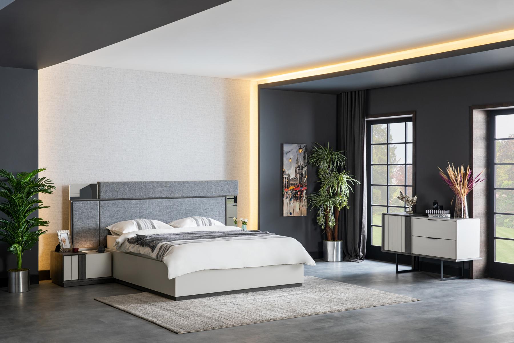 Представляем вашему вниманию современный дизайнерский спальня комплект, включающий в себя кровать, две прикроватные тумбочки и шкаф — все, что необходимо для создания уютного и стильного интерьера вашей спальни. Выполненный из качественного дерева с текстильными элементами, данный комплект гармонично сочетает в себе элегантность и функциональность. Размеры кровати — приблизительно 246 x 212 x 124 см, предоставляют достаточно пространства для комфортного сна. Тумбочки (63 x 45 x 39 см) обеспечивают удобное хранение ваших принадлежностей на расстоянии вытянутой руки, а вместительный шкаф (260 x 66 x 217 см) позволит разместить все ваши вещи, сохраняя порядок и организованность.