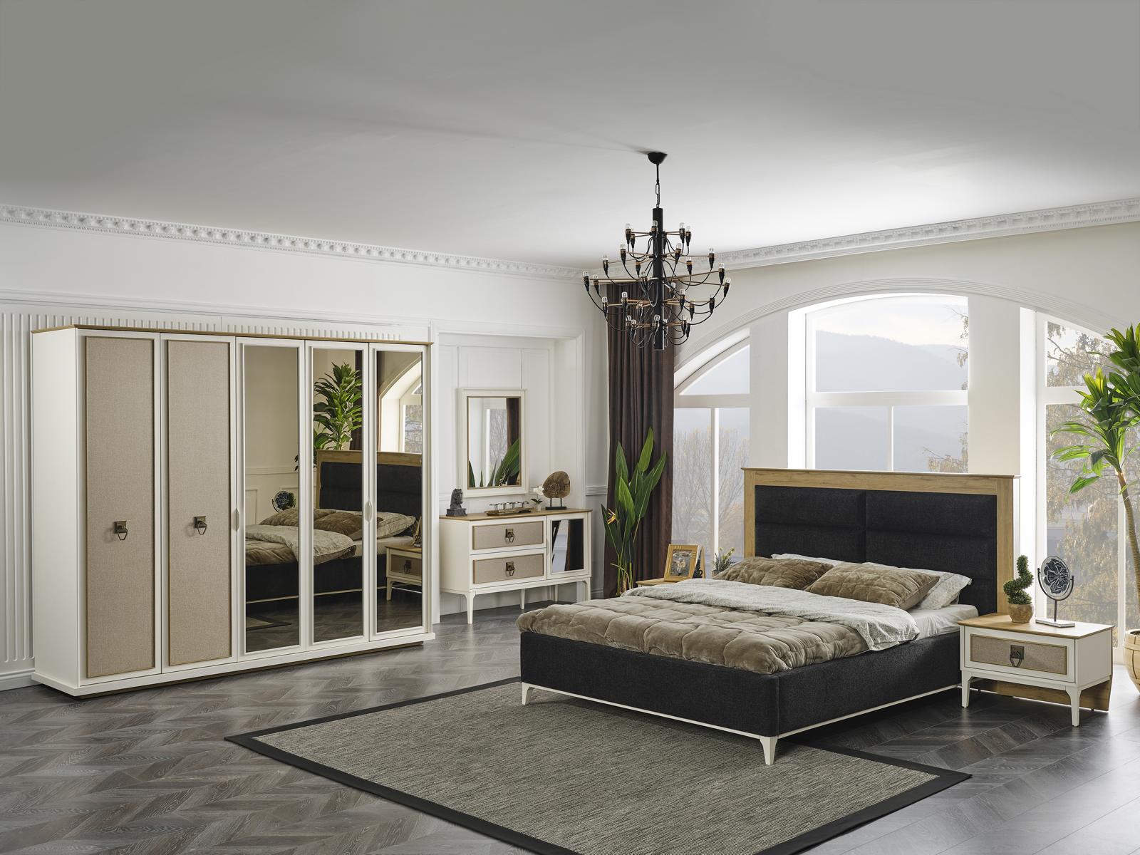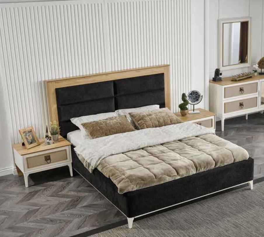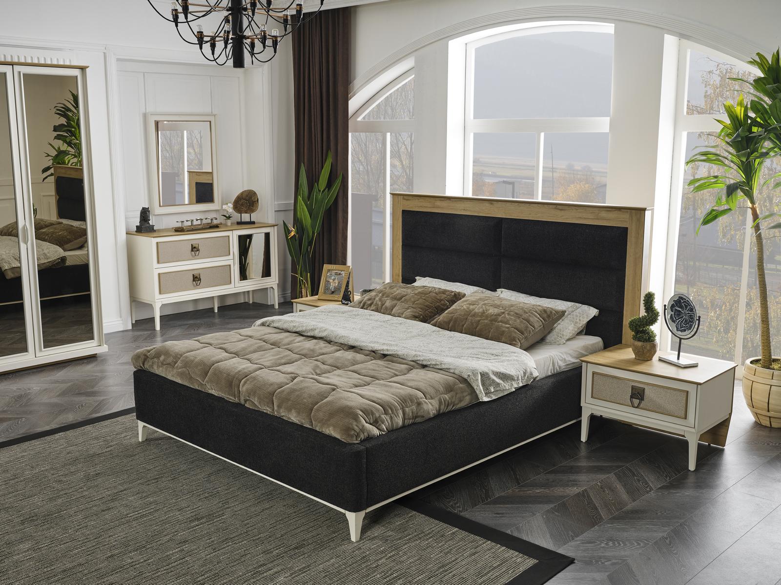 Набор мебели включает в себя просторную кровать размером 180 x 200 см, что обеспечивает комфортный и качественный сон. Две прикроватные тумбочки, каждая размером 67 x 46 x 47 см, предоставляют дополнительное место для хранения книг, ламп или других личных вещей. Впечатляющий платяной шкаф размером 255 x 66 x 217 см способен вместить все ваши наряды и аксессуары благодаря своему функциональному внутреннему устройству. Завершающий штрих - стильный комод с размерами 136 x 46 x 83 см, который идеально подходит для хранения белья или других личных вещей. Этот набор мебели может гармонично дополнить как современные, так и классические интерьеры, создавая удобство и уют в вашем доме.