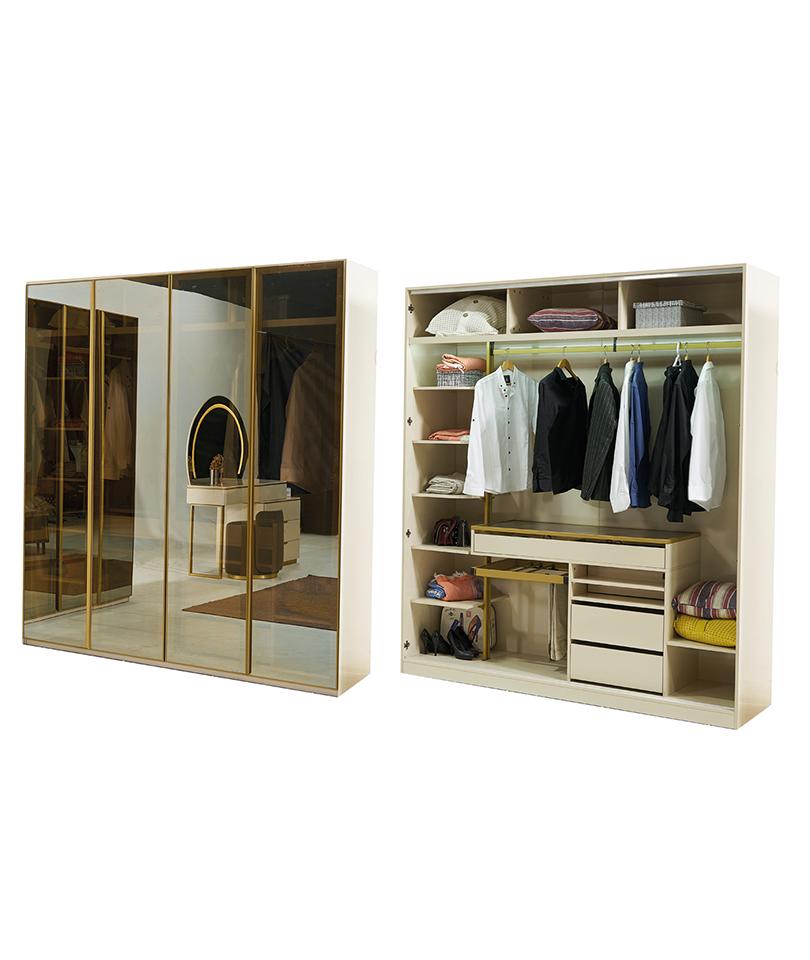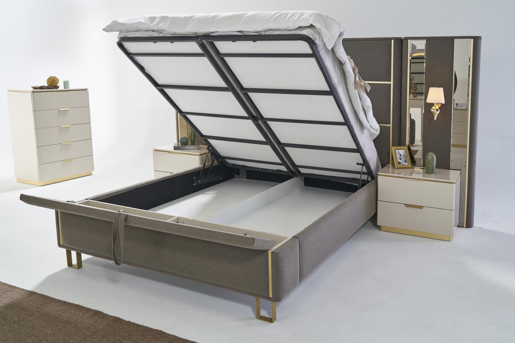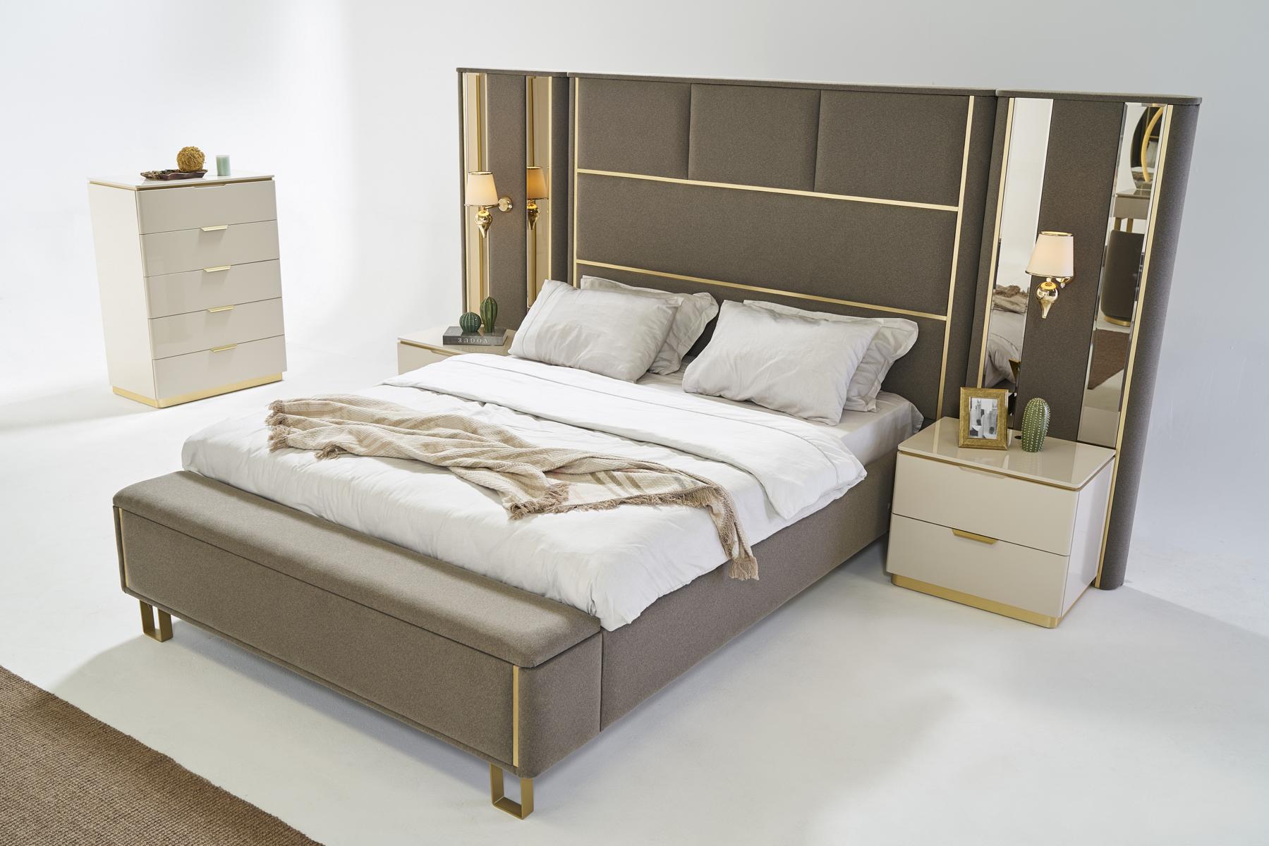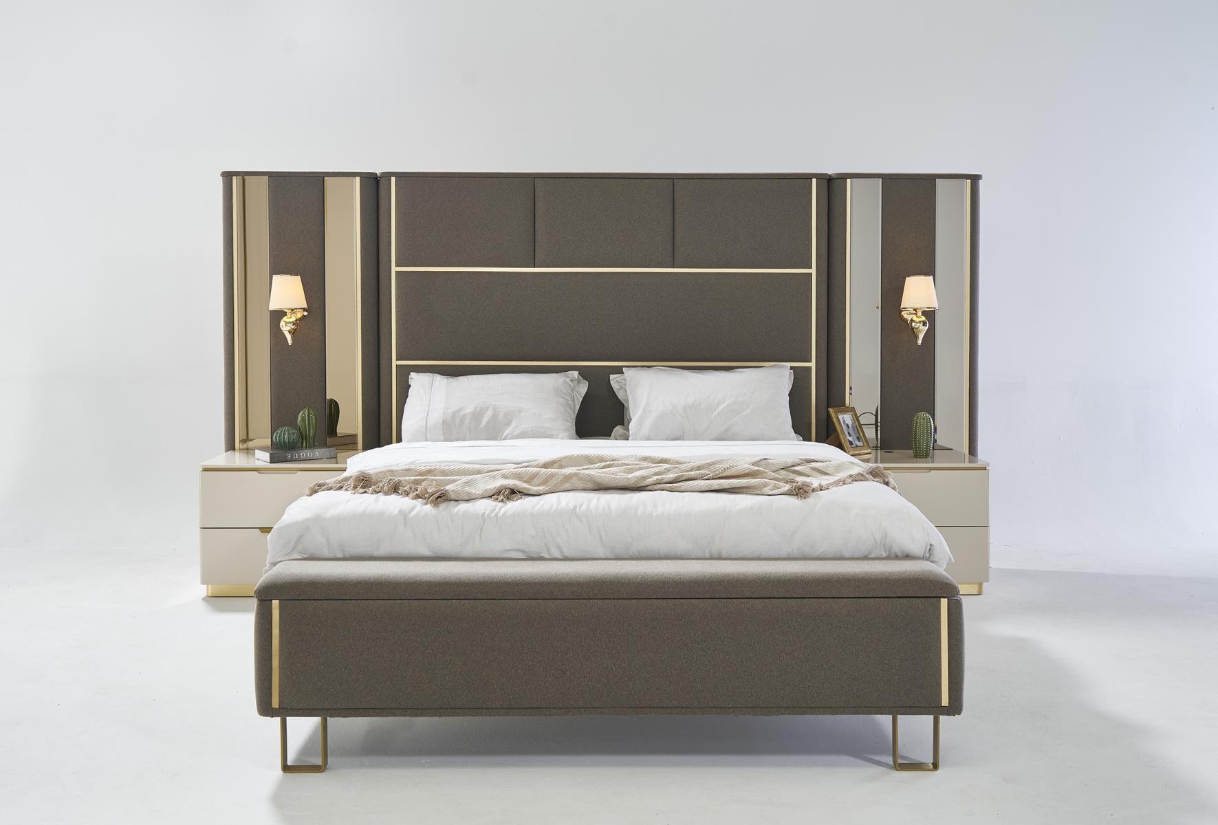 Этот роскошный набор спальни идеально подойдет для тех, кто ценит стиль, качество и комфорт. Замечательное сочетание элементов позволит вам создать уютное пространство для отдыха и хранения вещей. Расположите настенное панно над ночными столиками для добавления эстетической глубины или используйте туалетный столик и зеркало для создания уединенного места утреннего макияжа. Наслаждайтесь функциональностью шкафа и комода для удобного размещения вашей одежды и личных вещей. Воплотите свои мечты о идеальной спальне с этим элитным набором мебели.