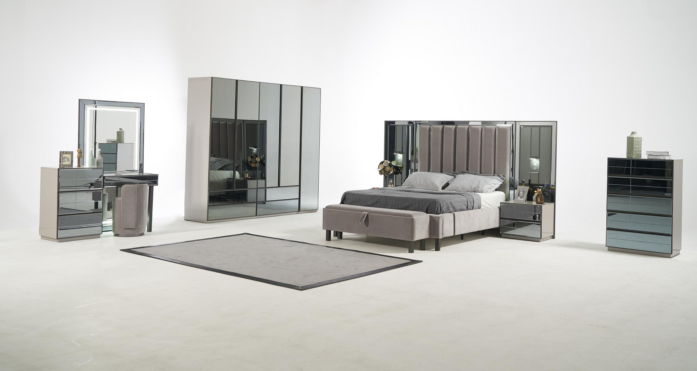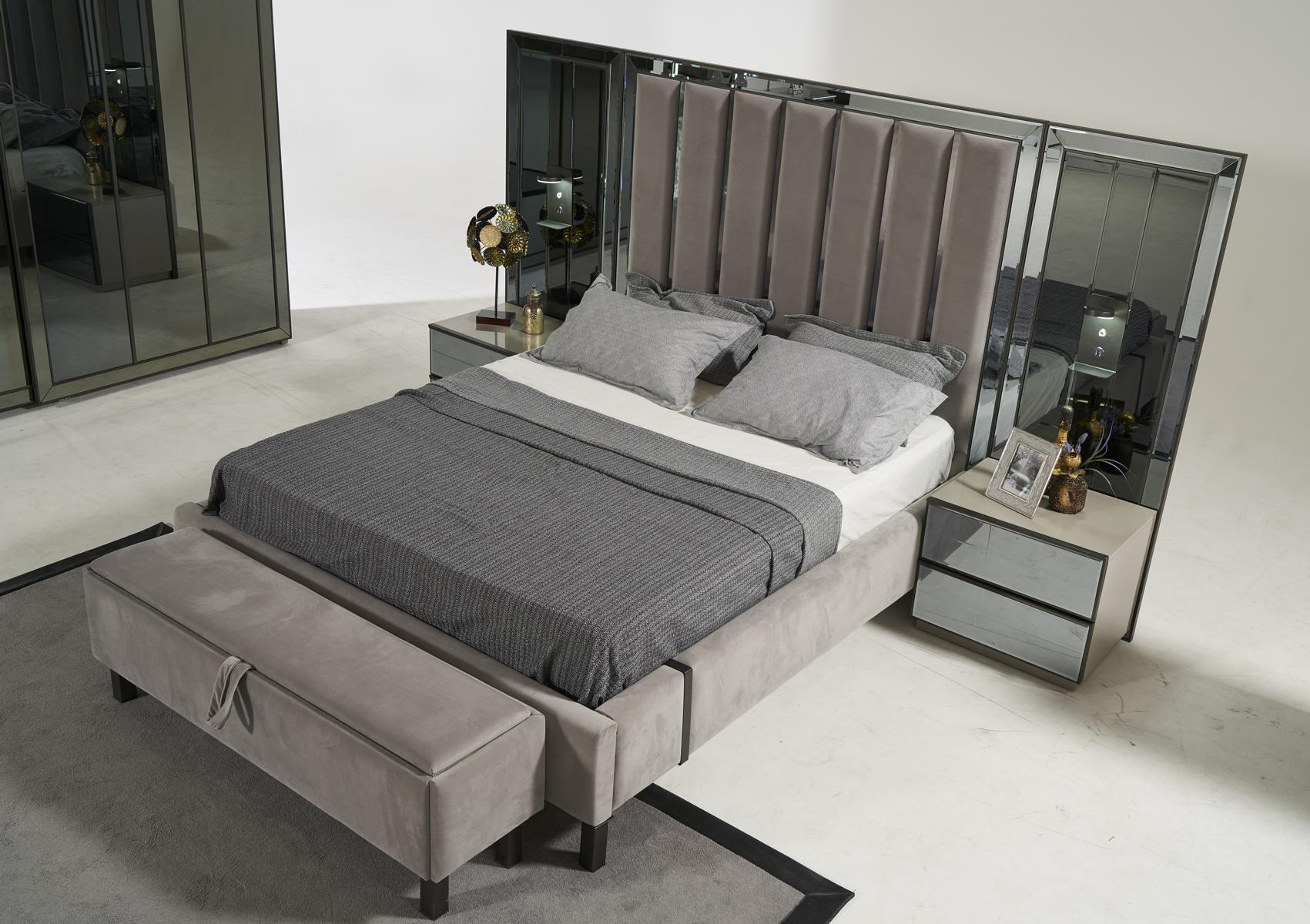 Набор спальни: кровать 2 шт., две тумбы, банкетка, двуспальная кровать, обивочная мебель, 4 предмета, новый