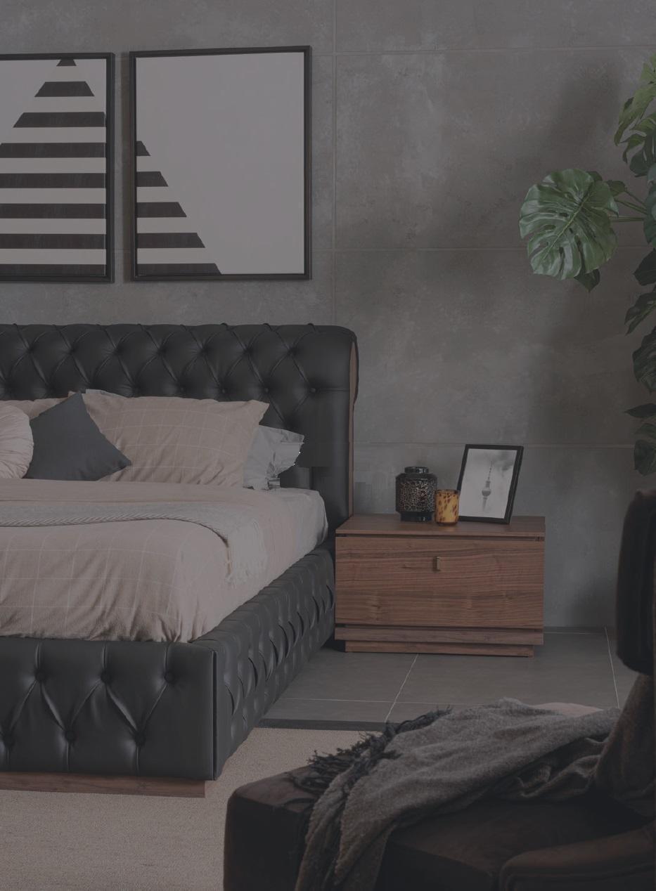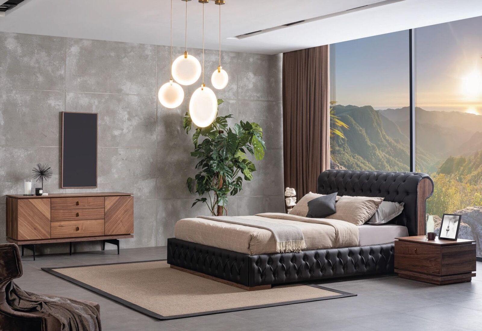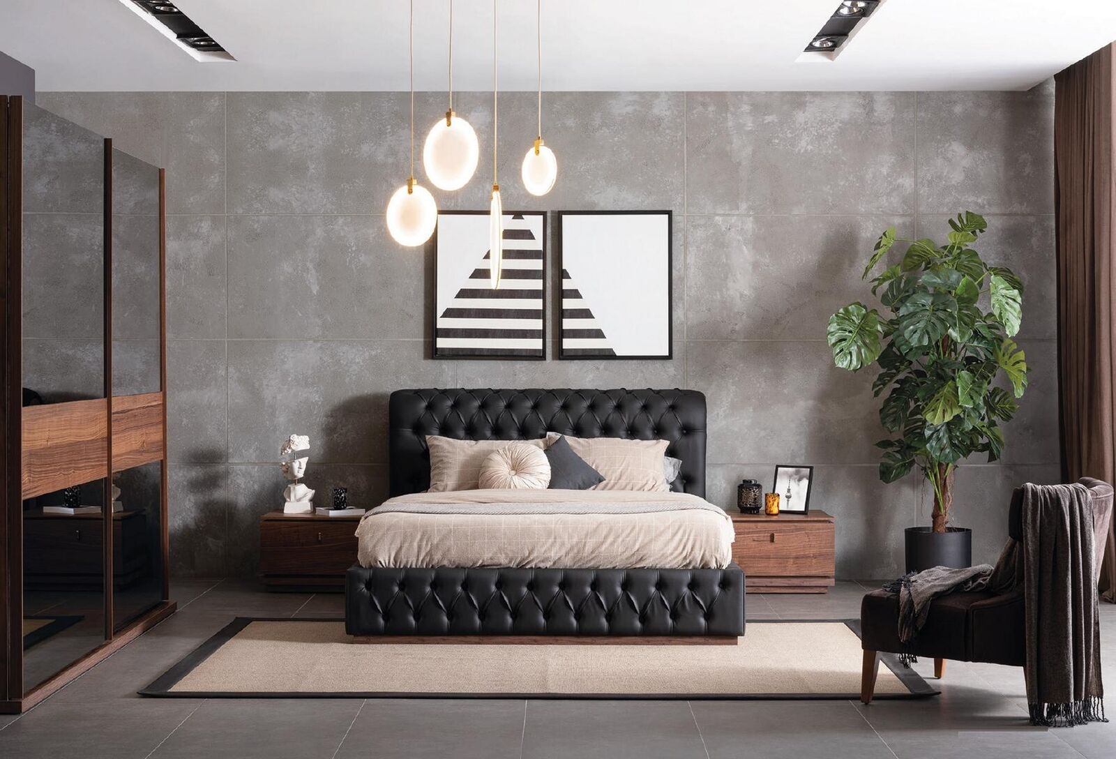 Кровать Шкаф 2x Тумбочка Роскошная Спальня Обивка Дизайн Новый