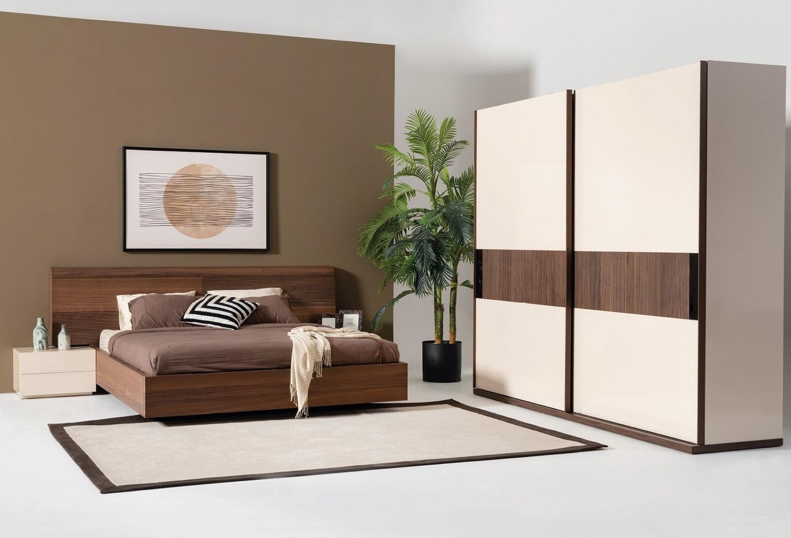 Этот набор мебели для спальни идеально подойдет для создания роскошного и стильного интерьера. Комбинация цветов и материалов придает комнате уют и элегантность. Кровать с удобными размерами обеспечит качественный сон, а шкаф и комод позволят удобно разместить вещи. Зеркало добавит простора и света в комнату, а прикроватные тумбочки станут удобным местом для хранения необходимых мелочей. Этот набор мебели станет прекрасным дополнением к вашему домашнему интерьеру, добавив в него шарм и функциональность.