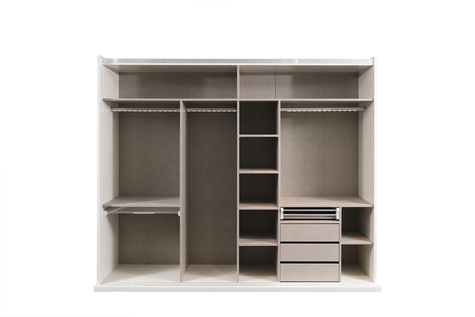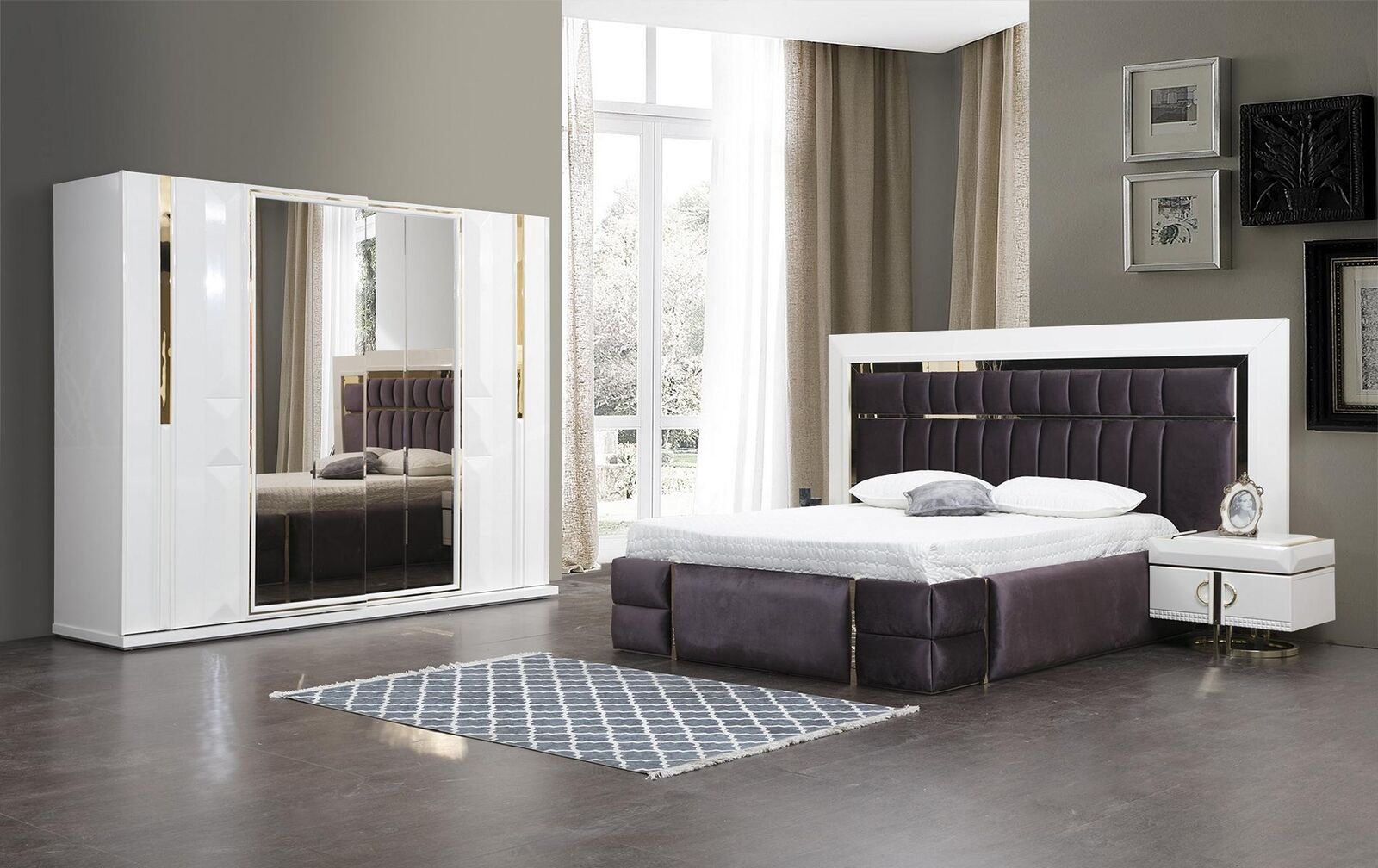 Этот комплект мебели спроектирован так, чтобы гармонично вписываться в любое современное пространство, обеспечивая как функциональность, так и эстетическую привлекательность. Огромный шкаф с габаритами 259 x 69 x 214 см предлагает обширное пространство для хранения одежды и аксессуаров, меняя вашу комнату в уголок порядка и стиля. Используйте этот комплект в качестве центрального элемента декора вашей спальни, создавая атмосферу уюта и элегантности, независимо от размера вашего интерьера.