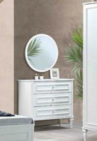 Мебель на изящных ножках добавляет легкости и аэродинамичности дизайну, подходящему как для классических, так и для современных интерьеров. Этот комплект позволяет создать не только уютное пространство для отдыха, но и эффективное рабочее место, благодаря эргономичному письменному столу. Зеркало круглой формы станет акцентом вашей спальни и визуально расширит пространство. Используйте данный набор, чтобы вдохнуть новую жизнь в вашу комнату, сделать ее более функциональной и стильной.