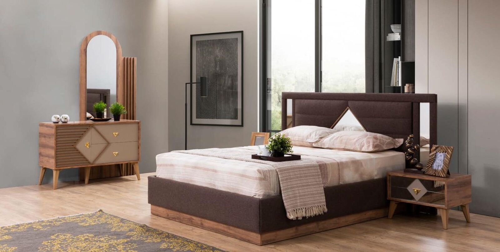 Комплект "EVEREST" также включает две тумбочки и комод, что позволяет организовать пространство спальни максимально функционально. Тумбочки размером 60 x 45 x 43 см и комод размером 120 x 45 x 78 см предоставляют дополнительное хранение для ваших личных вещей, при этом их дизайн идеально сочетается с кроватью, создавая цельный и гармоничный облик помещения. Дайте вашей спальне новую жизнь с этим изысканным набором мебели для спальни "EVEREST", и наслаждайтесь комфортом и элегантностью каждый день.
