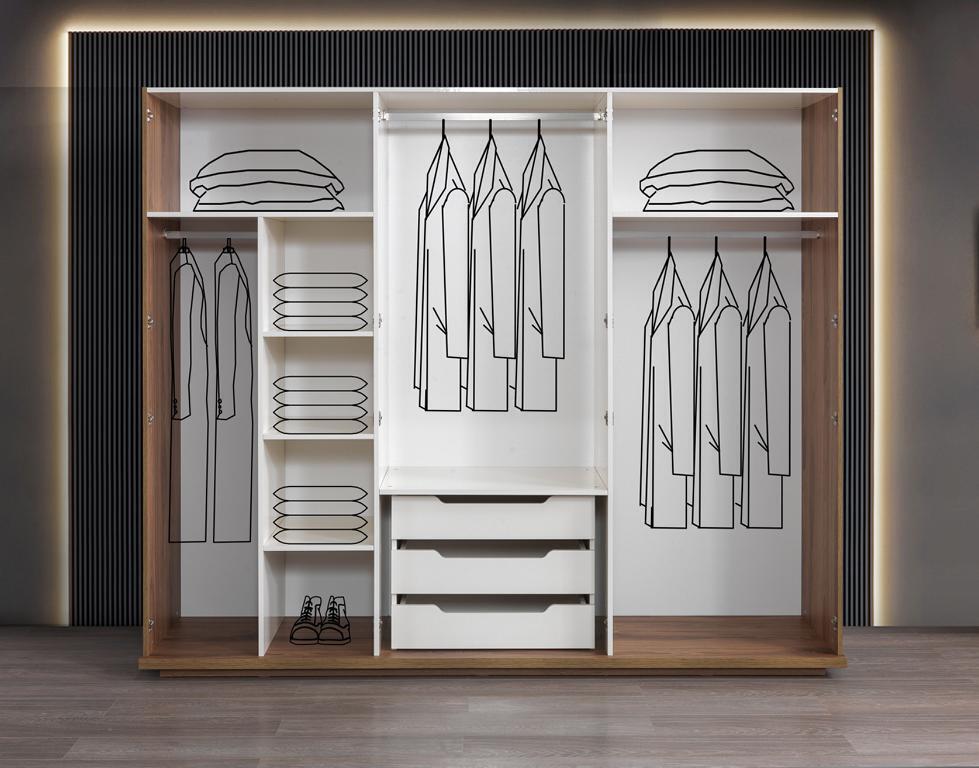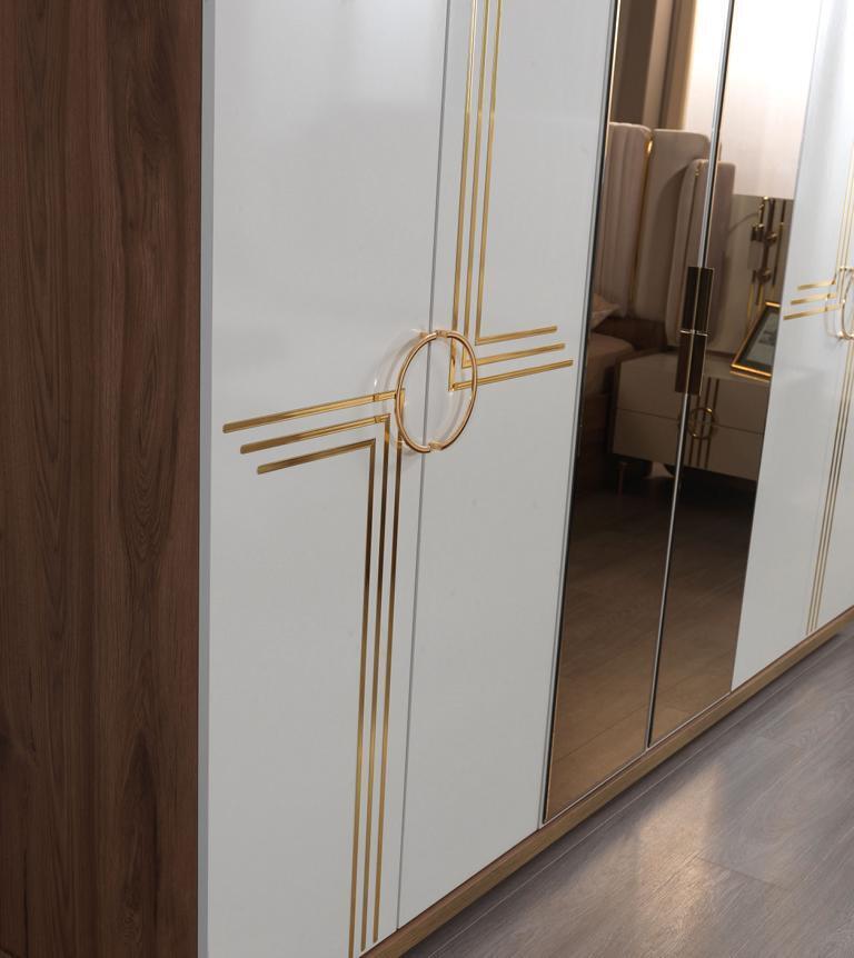 Набор для спальни: кровать, 2 прикроватных столика, шкаф - идеальное решение для создания уютного и роскошного интерьера в вашей спальне. Этот набор состоит из 5 предметов, включая просторную кровать с удобной спальной зоной размером 180x200 см, а также два элегантных прикроватных столика и вместительный шкаф. Дизайн этого набора сочетает в себе эстетику и функциональность, а мебель выполнена из высококачественного дерева, стекла и текстиля, обеспечивая долговечность и стильный внешний вид.