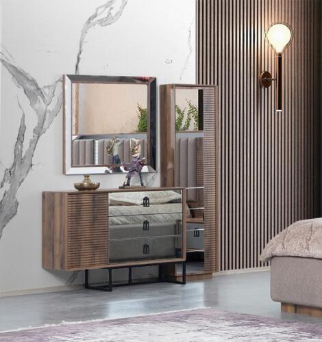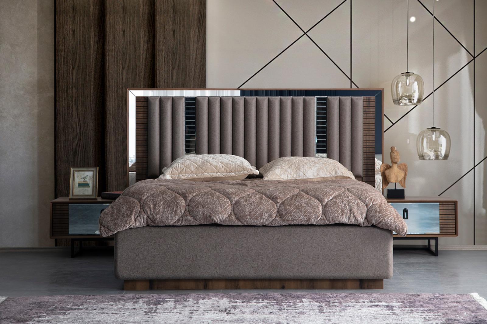 Этот стильный современный спальный гарнитур в коричневом цвете придаст вашей спальне элегантный и уютный вид. Изготовленный из высококачественного дерева, текстиля и металла, он обеспечивает прочность и долговечность. Прекрасное сочетание цветов и материалов делает этот гарнитур идеальным выбором для тех, кто ценит комфорт, функциональность и стиль в своем интерьере. Почувствуйте роскошь и удобство с этим современным спальным гарнитуром.