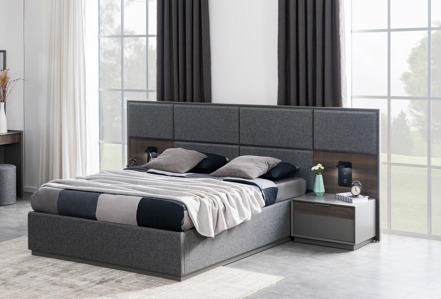Спальня Кровать 2x Прикроватный столик Комплект Постельного белья с USB-светом Лофт