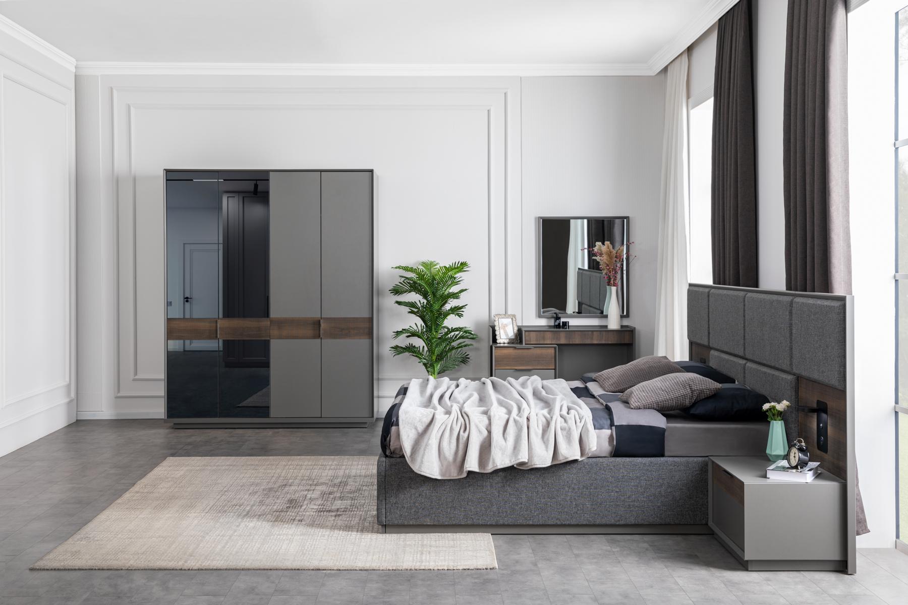 Этот ультрасовременный комплект будет идеальным выбором для современных интерьеров в стиле Лофт. Акцентный цвет, представленный как на изображении, придаст вашей спальне особенного шарма. Сочетание удобства, функциональности и стильного дизайна делает этот комплект идеальным для тех, кто ценит комфорт и современный дизайн в своем доме. Создайте уютное место отдыха с Спальня Кровать 2x Прикроватный столик Комплект Постельного белья с USB-светом Лофт и наслаждайтесь качественным отдыхом каждый день.