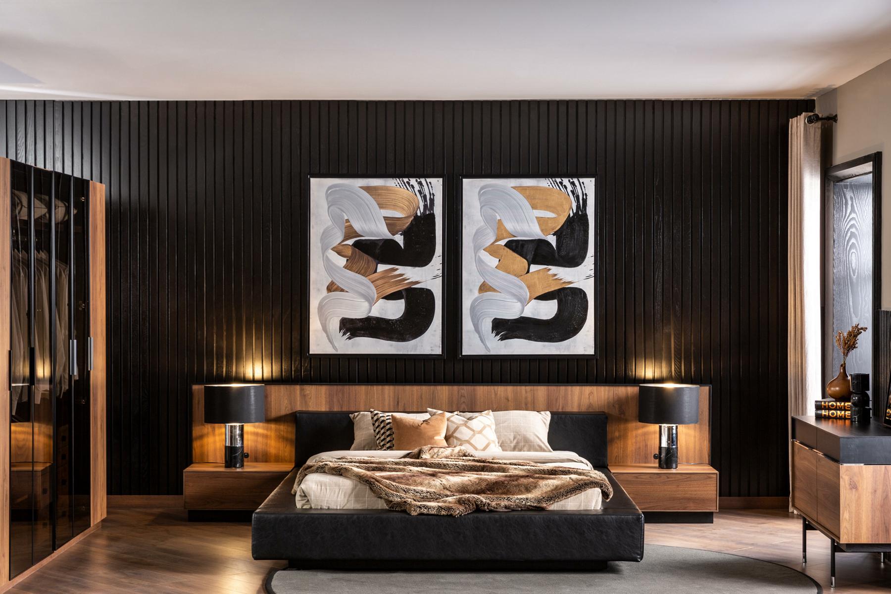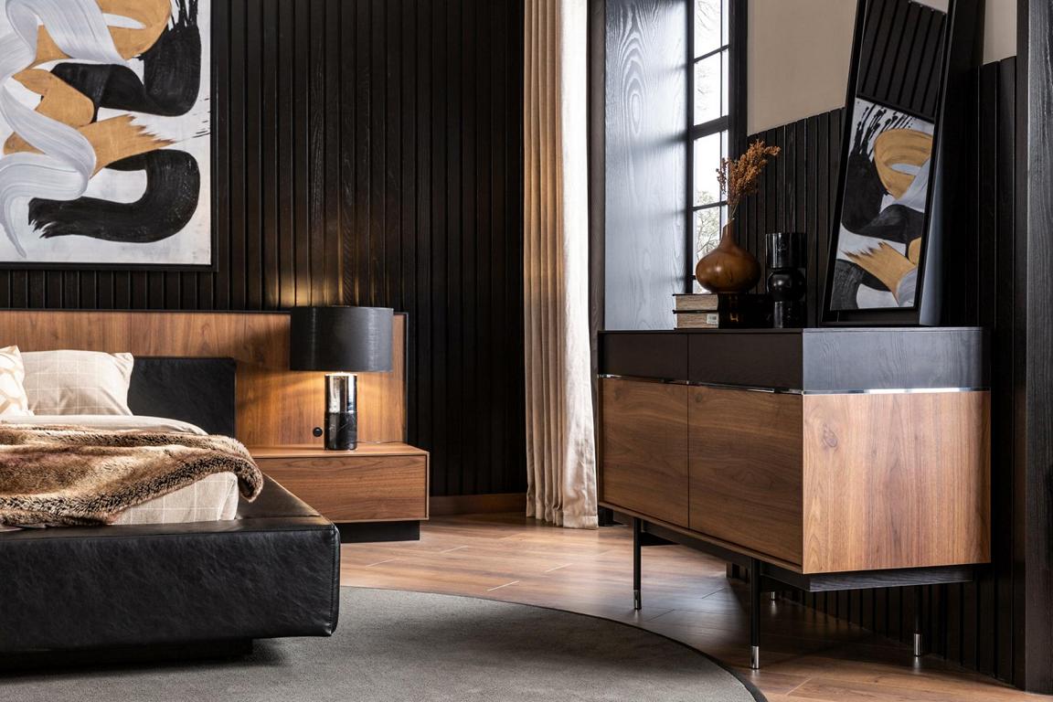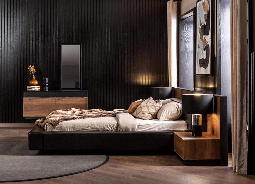 Набор спальни в роскошном отеле: комод, шкаф, ночной столик, кровать (6 предметов).