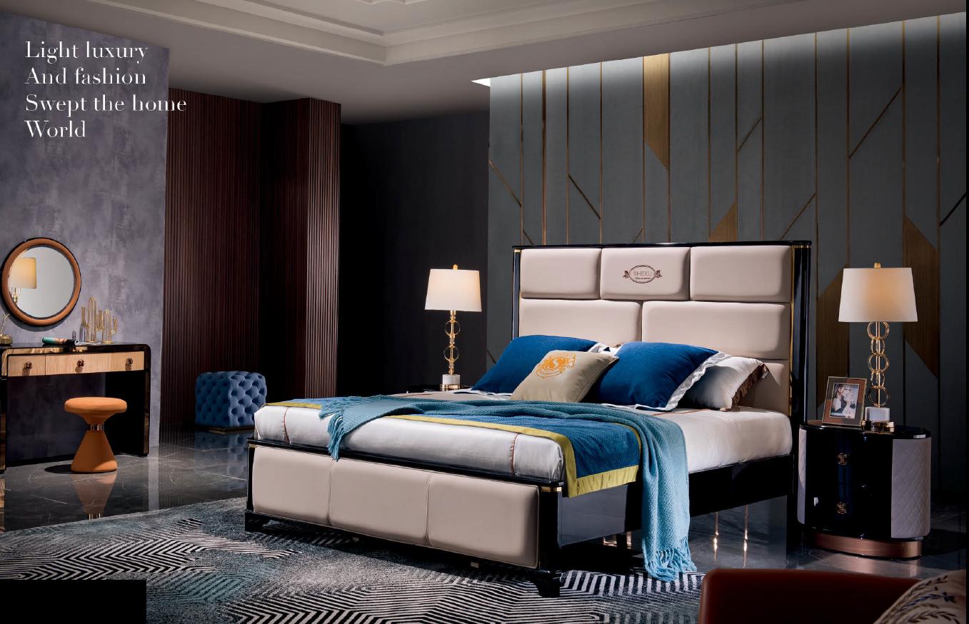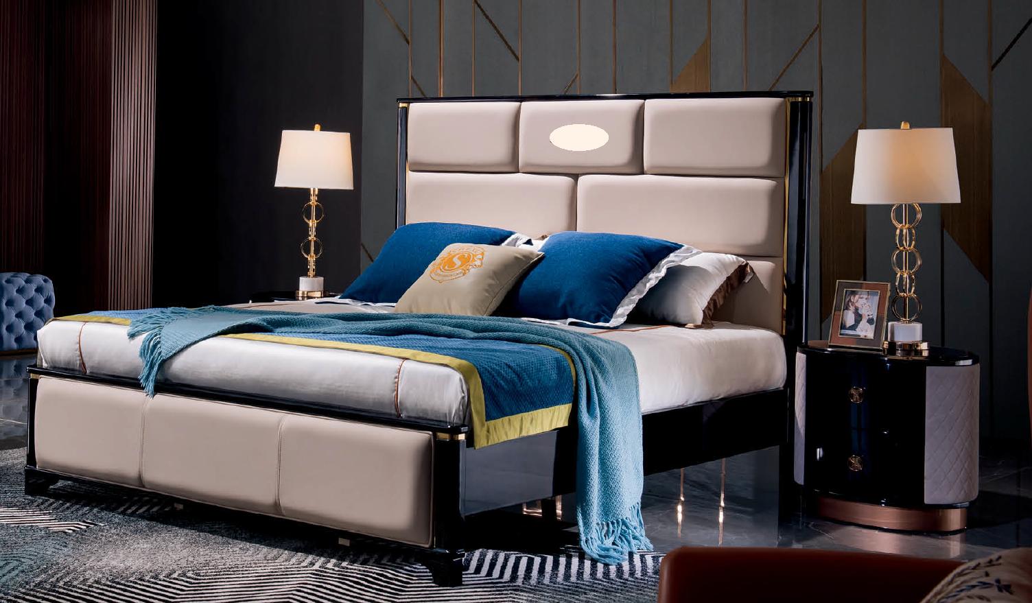 Спальня кровать прикроватные столики 3 предмета. Набор дизайна роскошных кожаных двуспальных кроватей.