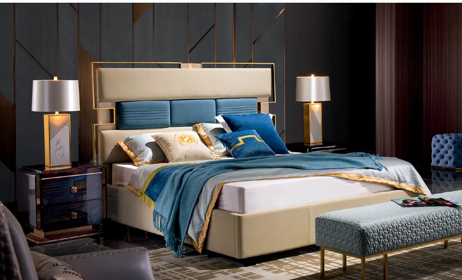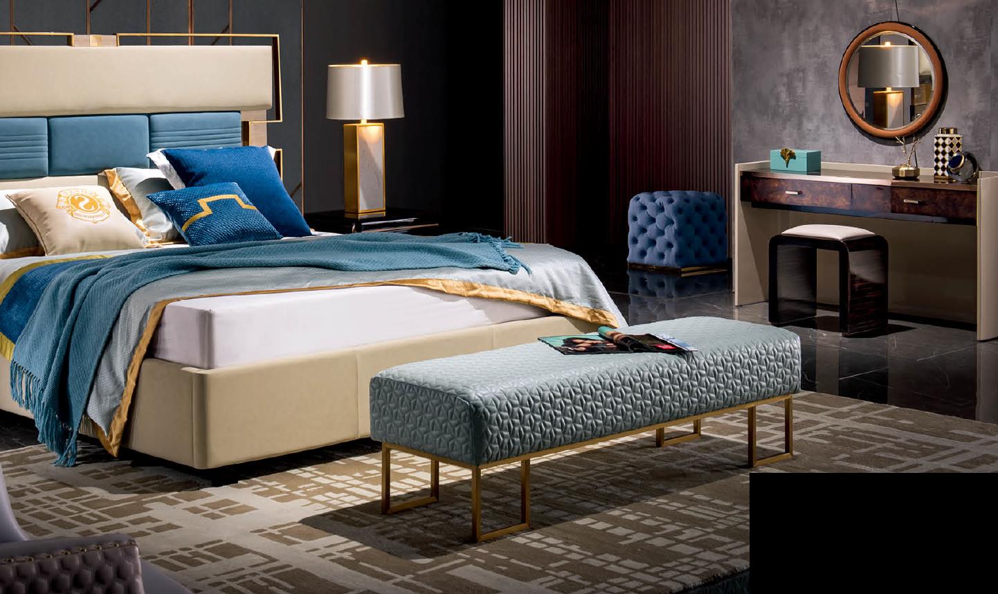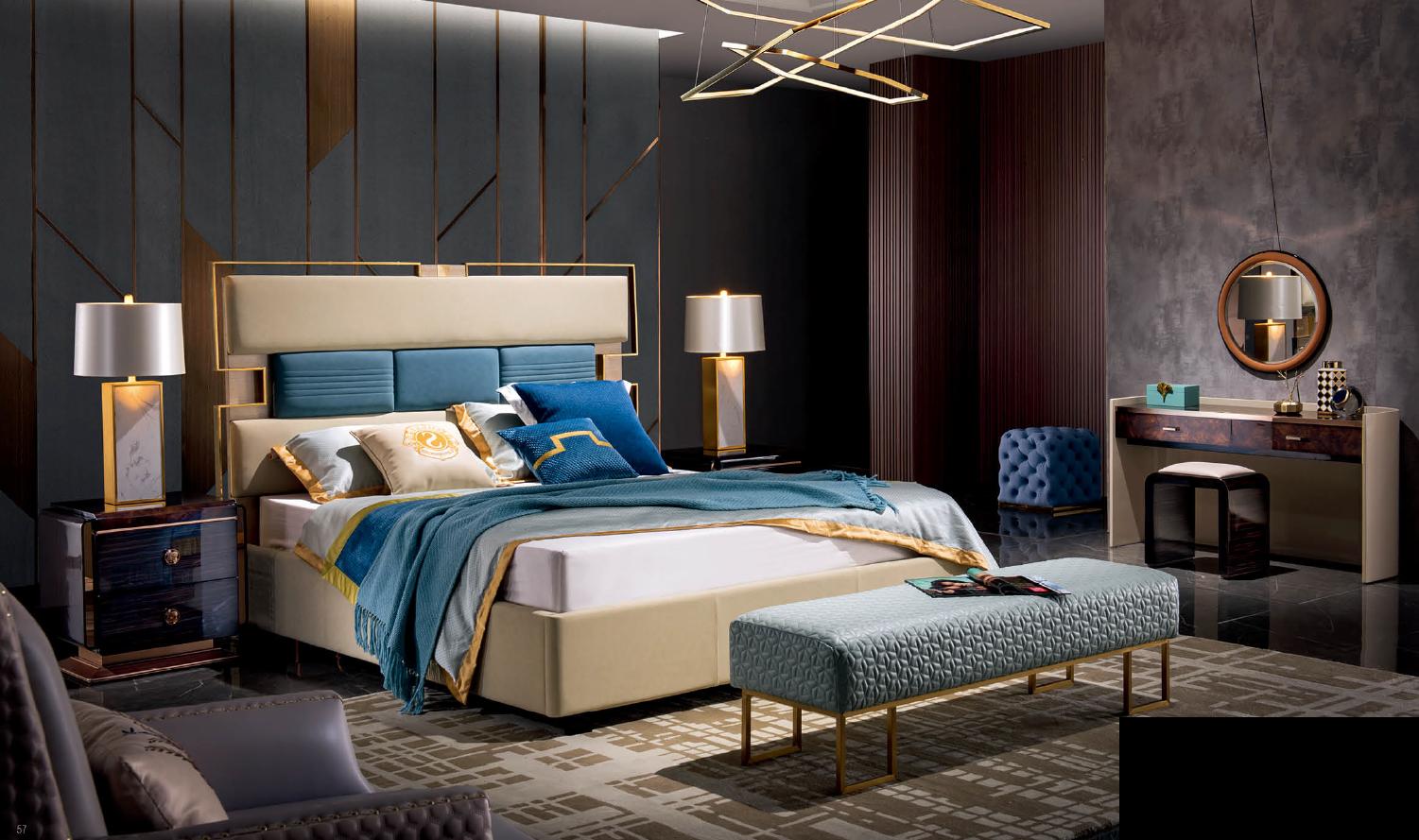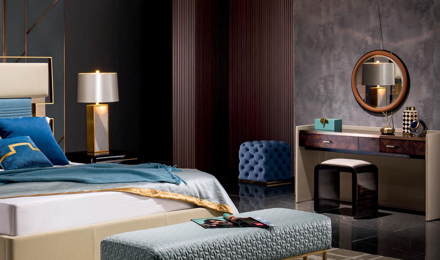 Кровать, ночной столик, туалетный столик 6 предметов. Дизайн спальни современный роскошный.
