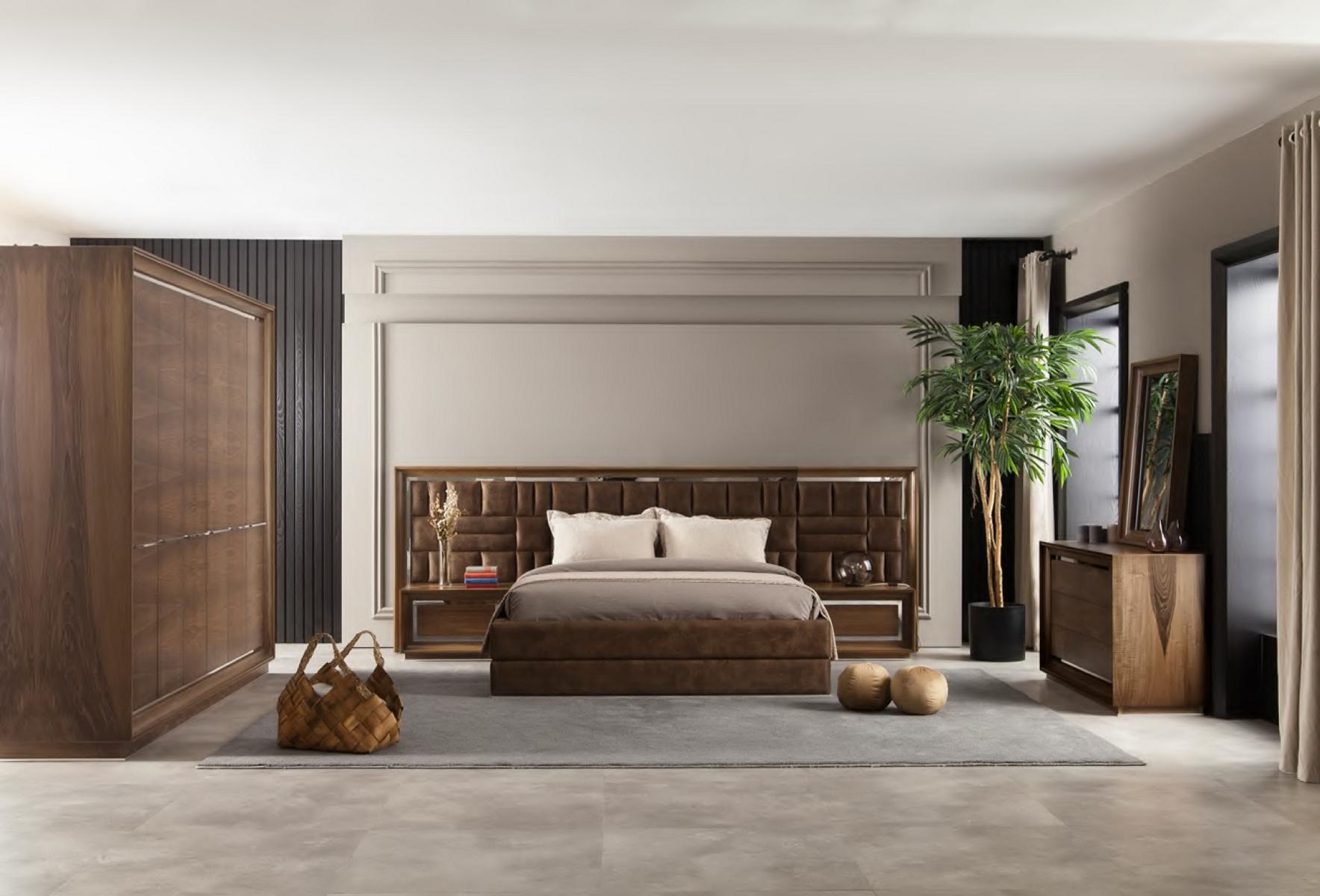 Роскошный, стильный 4-х частный спальный гарнитур коричневого цвета