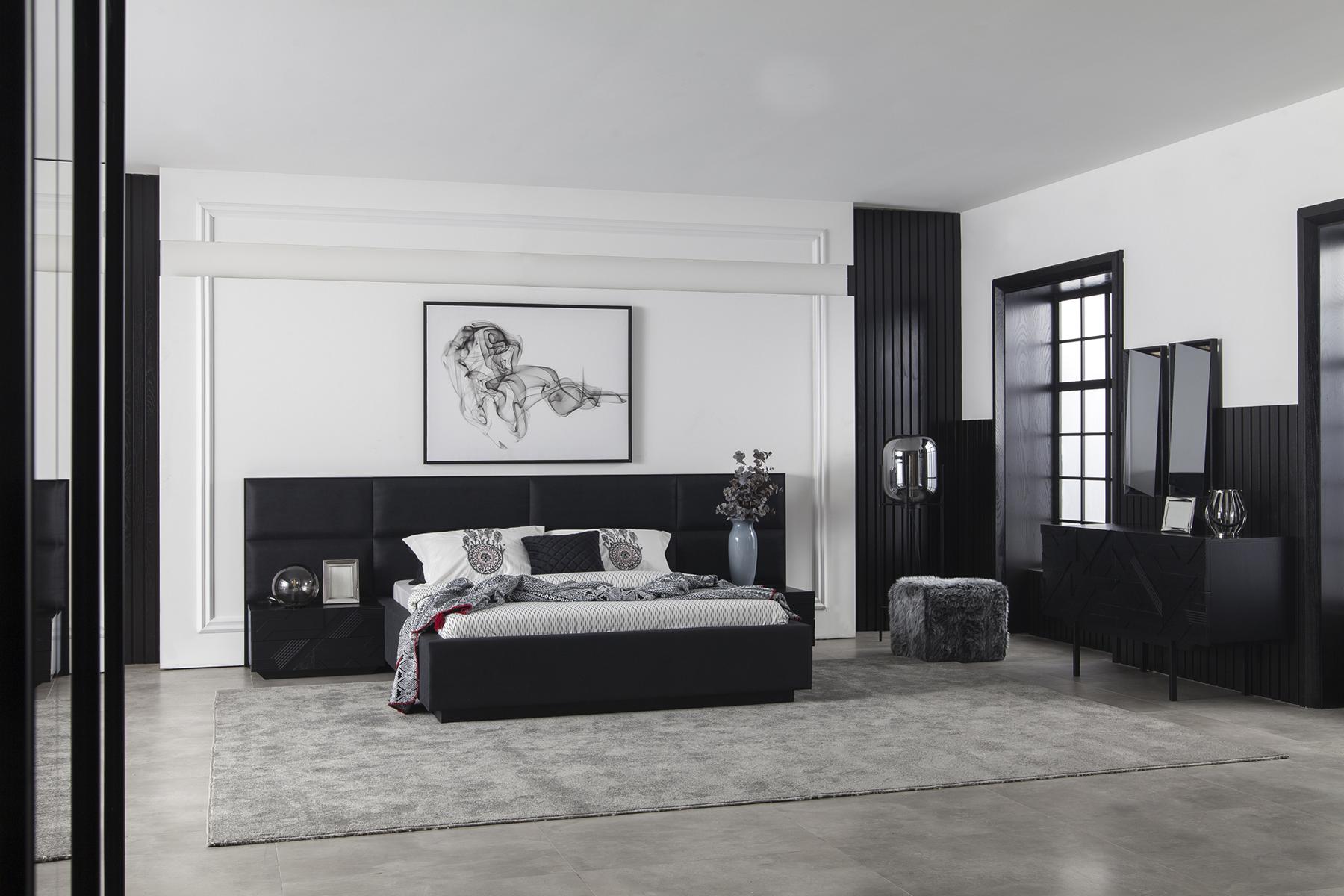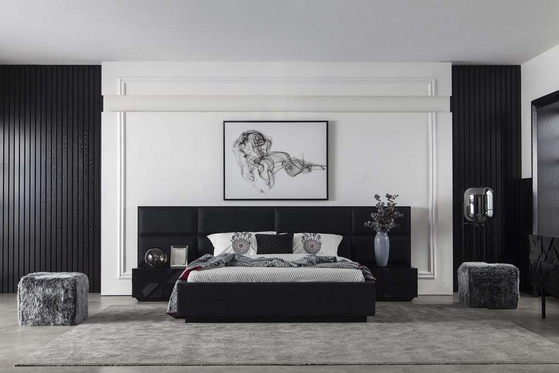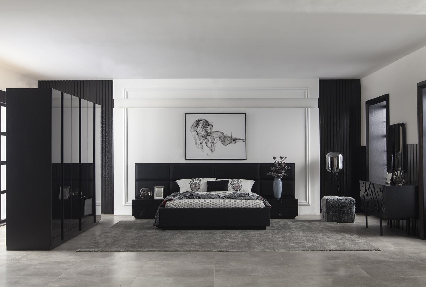 Комплект мебели для спальни из 4 предметов, в черном цвете, роскошный комплект с хранилищем, новый.