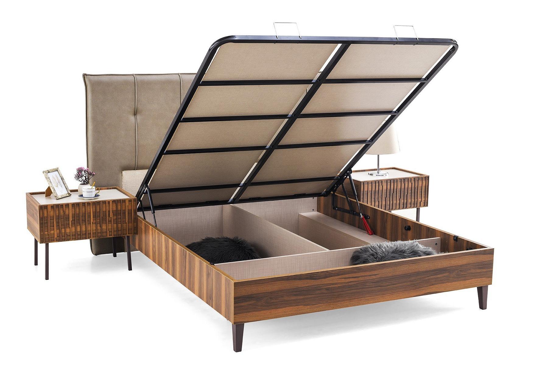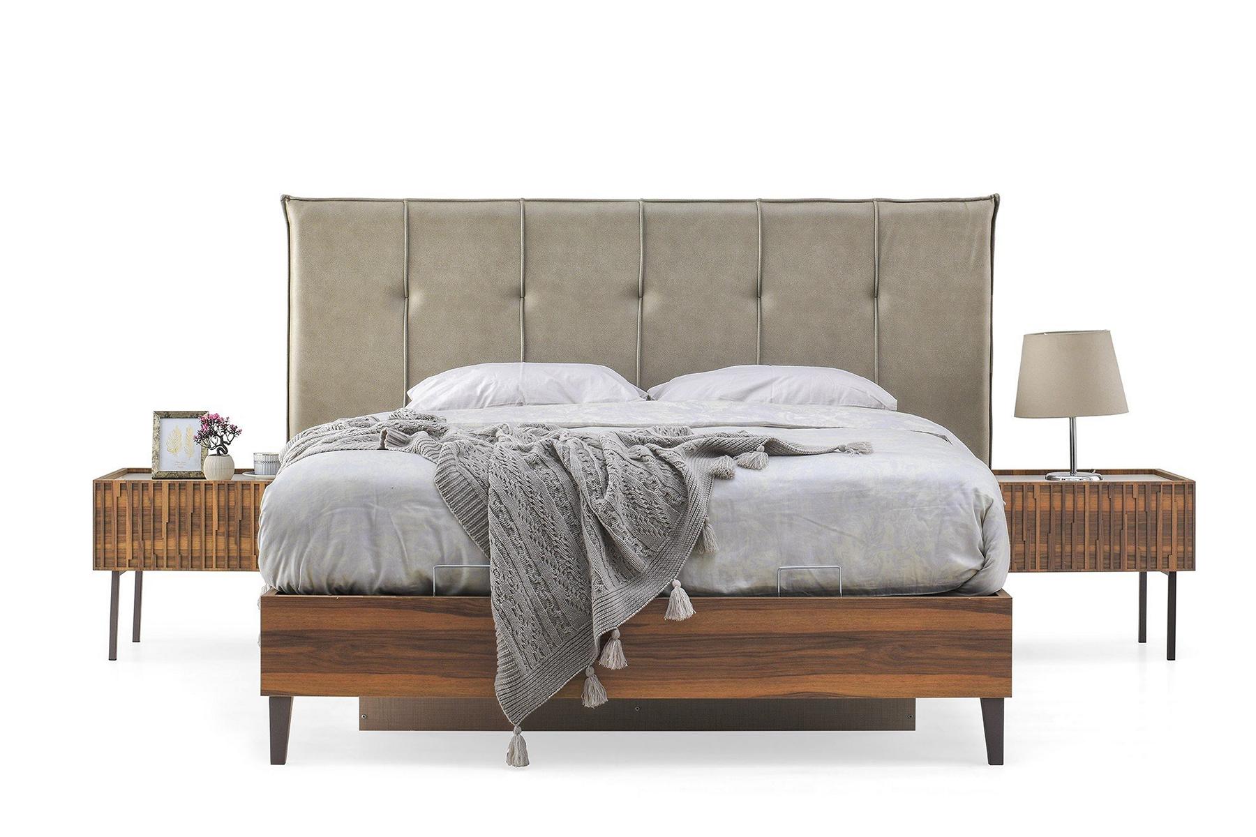 Современный комплект мягкой мебели для спальни, дизайнерская двуспальная кровать с деревянными консольными столиками.