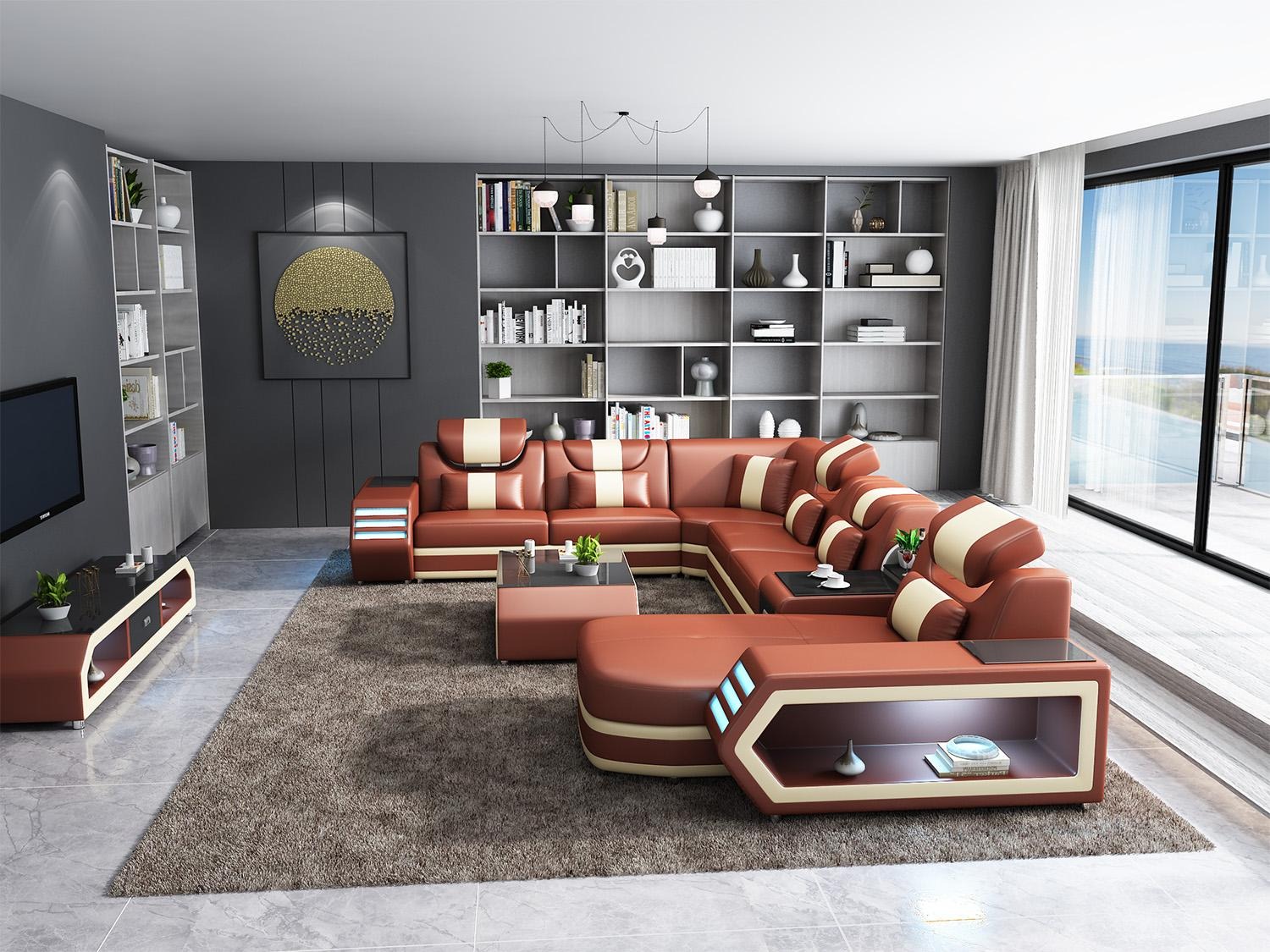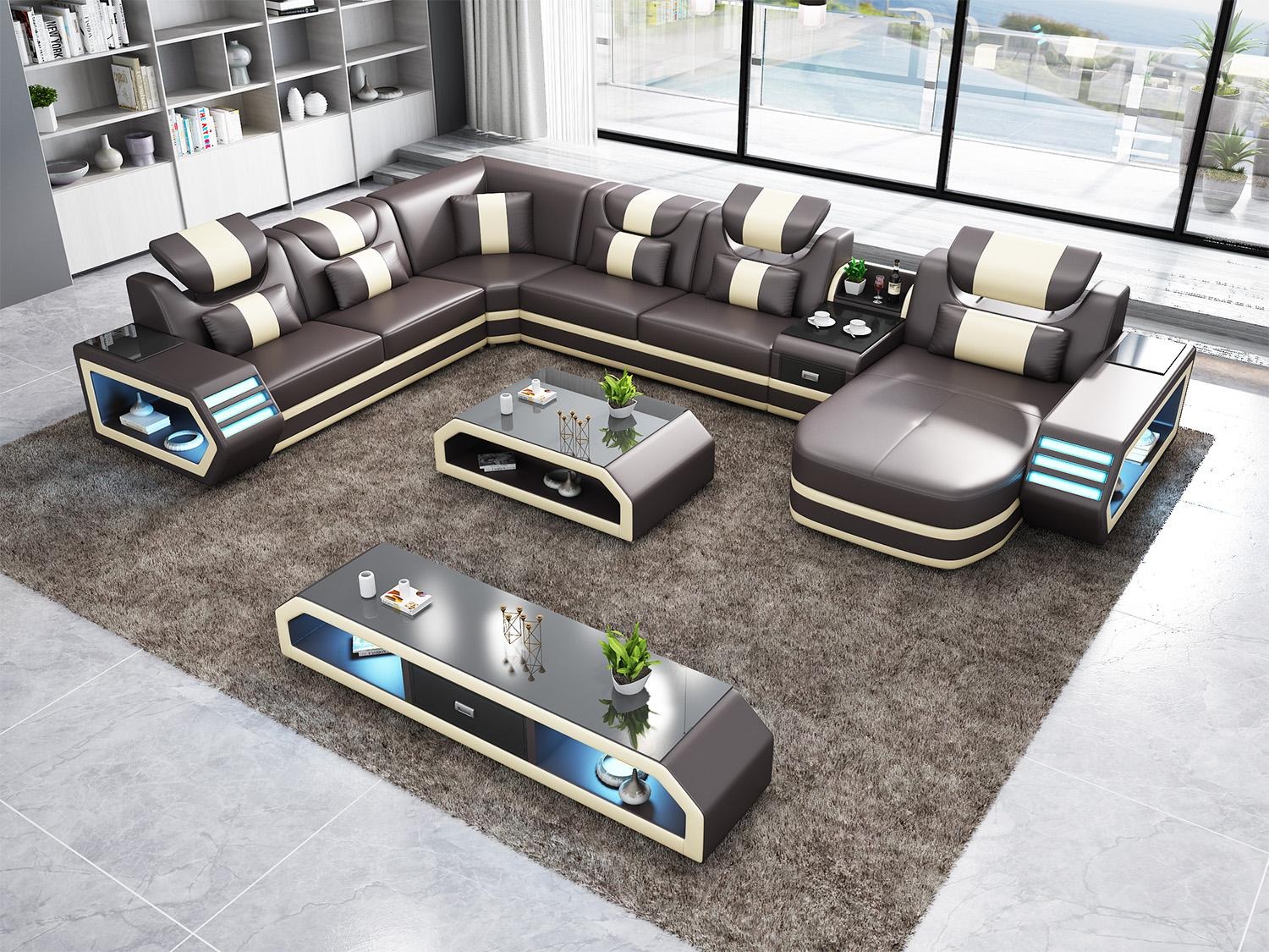 Мягкий угловой диван Необычный жилой угловой диван угловой модульный диван диваны диваны usb led - это изысканное сочетание комфорта и современных технологий. С его размерами приблизительно 278 х 410 х 189 см и стильным дизайном в форме U он станет идеальным дополнением к вашему интерьеру. Высокое качество материалов - премиум кожаный волокнистый материал (70% кожа / 30% полиэстер) обеспечивает прочность и элегантность дивана. С 3 USB портами встроенными в корпус, вы сможете удобно заряжать ваши устройства, не отходя далеко от уюта дивана.