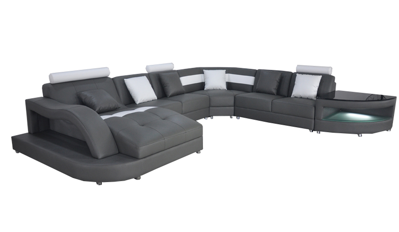 Кожаный диван современного дизайна угловой гарнитур U-образной формы + столик