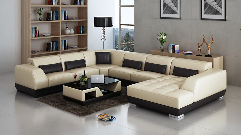 Современный кожаный диван, угловой диван, угловая мягкая мебель, диван, украшение, дизайнерский гарнитур.