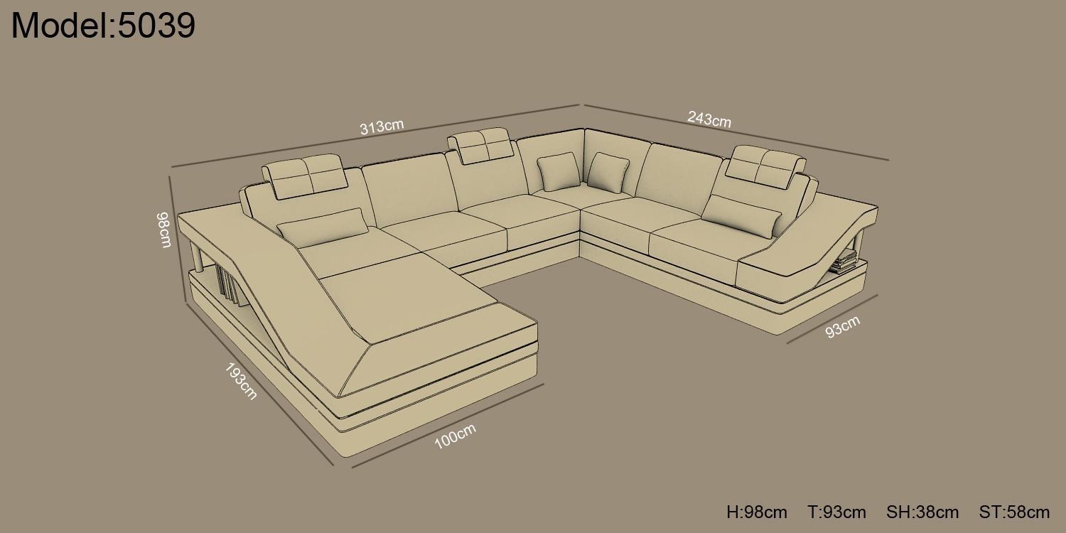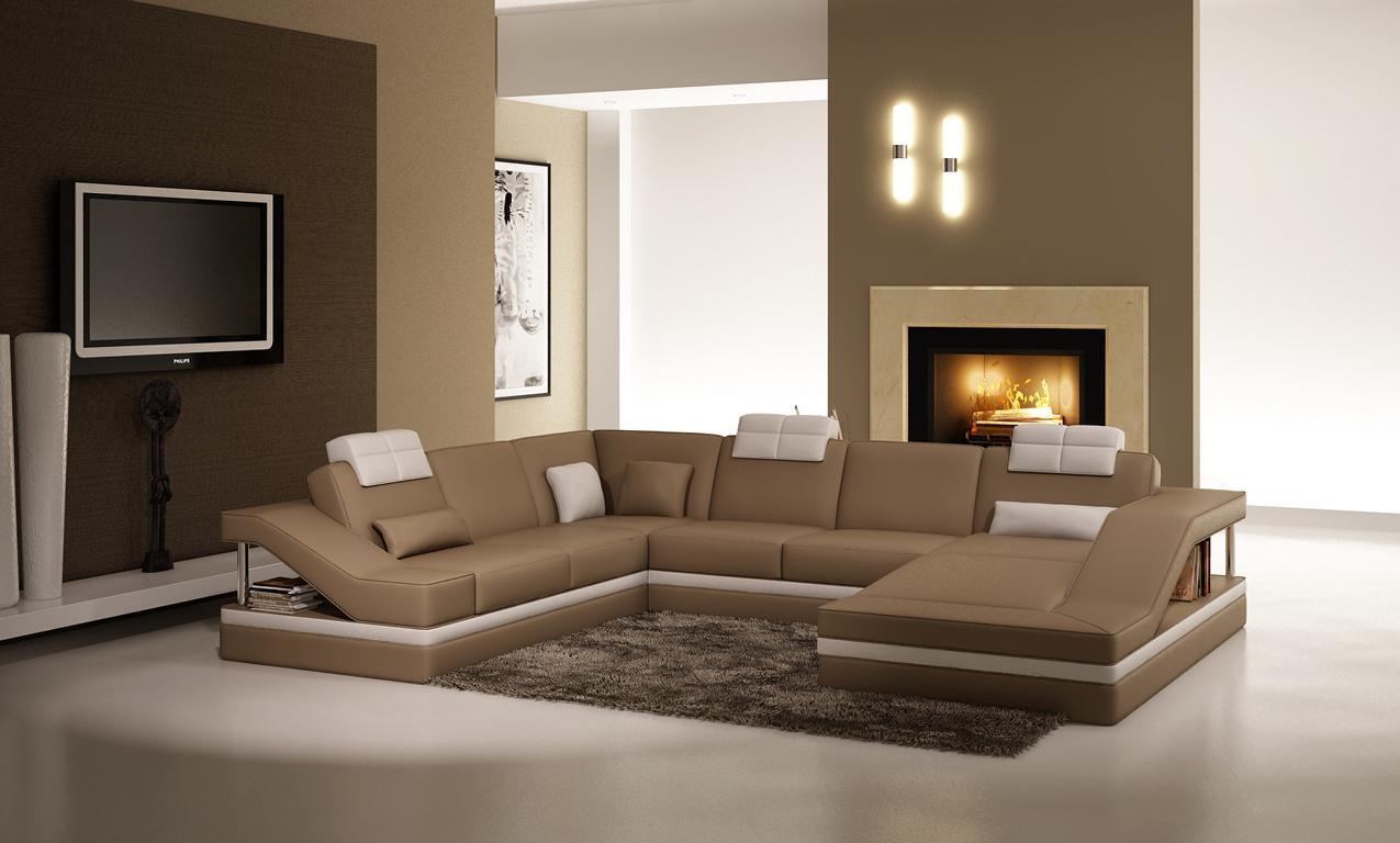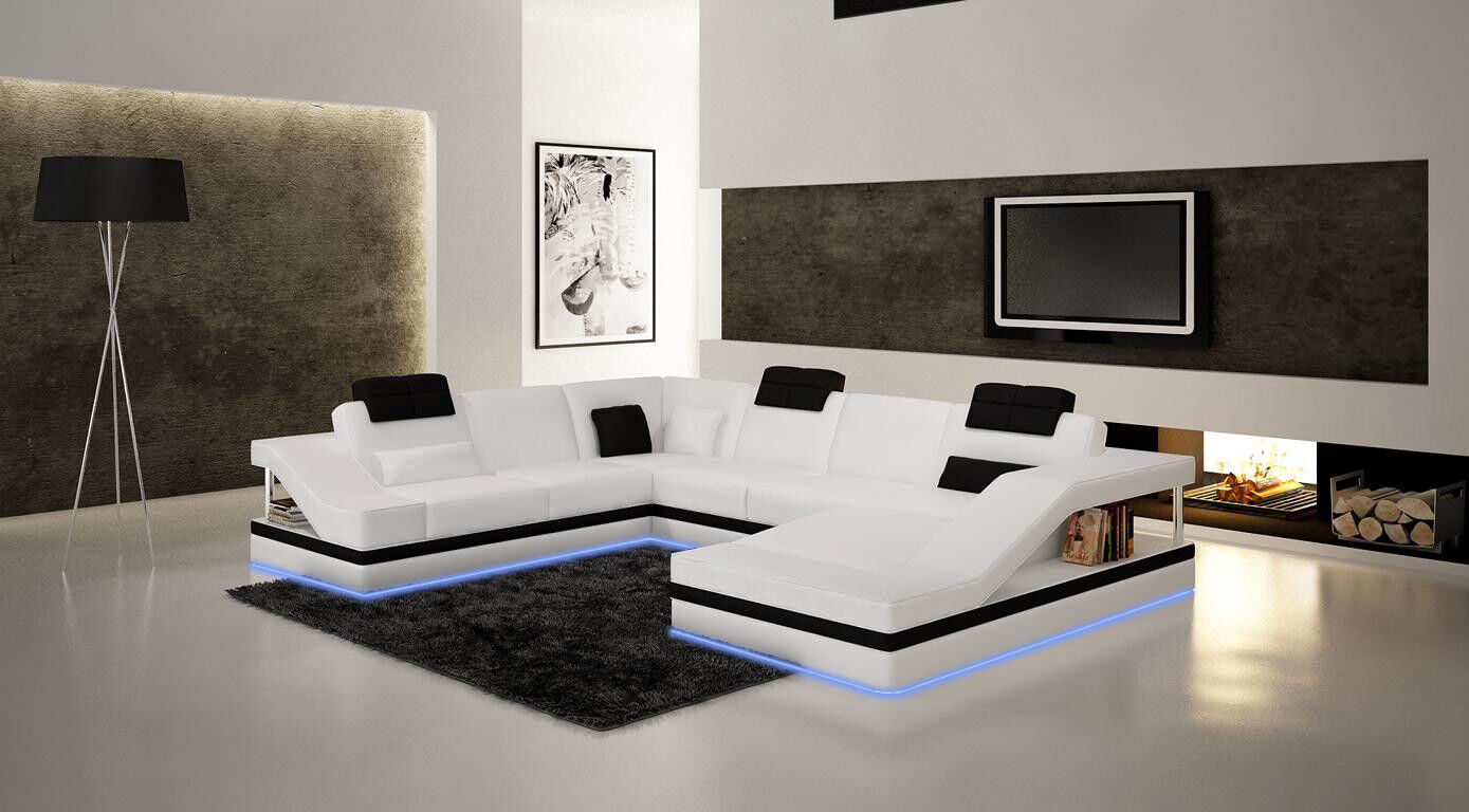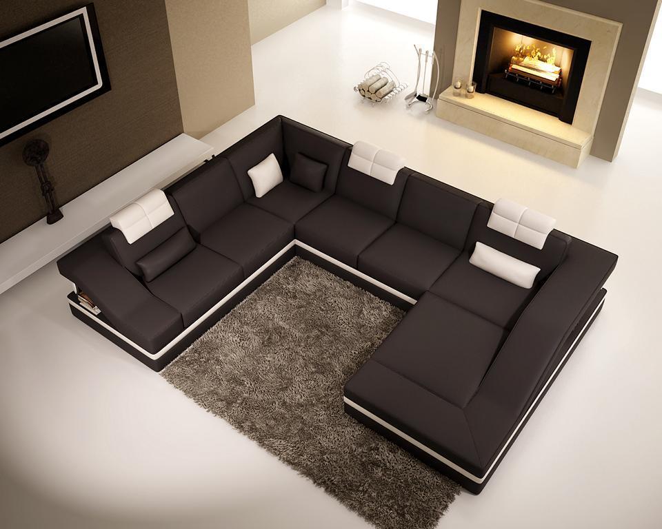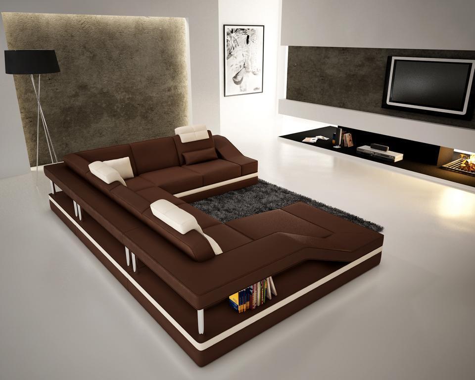 Дизайнугловой диван большой мягкий угловой XXL из кожи, декорированный гарнитуром