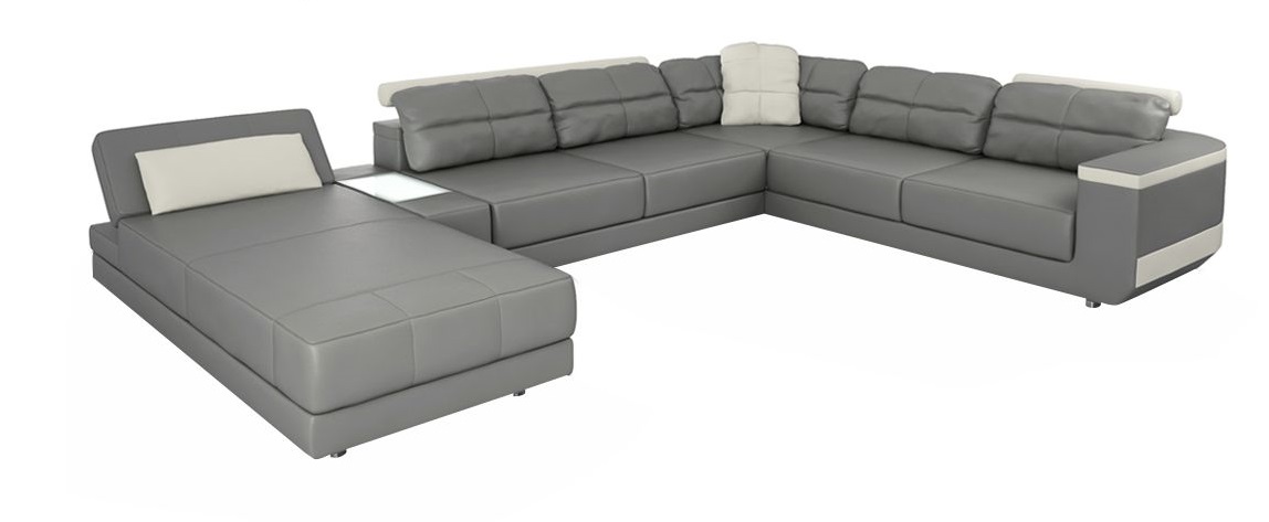 Модульный угловой диван серый кожа обивка угол диван U-образной формы новые диваны – это идеальное сочетание стиля и комфорта для вашего дома. С размерами около 252 x 348 x 180 см, этот диван создаёт достаточно места для всей семьи и гостей, предлагая уютное пространство для отдыха. Высота дивана составляет около 85/77 см, а высота сиденья — около 41 см, что обеспечивает удобное расположение. Обивка выполнена из премиум кожаного волокна (70% кожа / 30% полиэстер), что придаёт изделию изысканный вид и долговечность. Доступная палитра цветов позволяет выбрать оттенок, который идеально впишется в ваш интерьер.